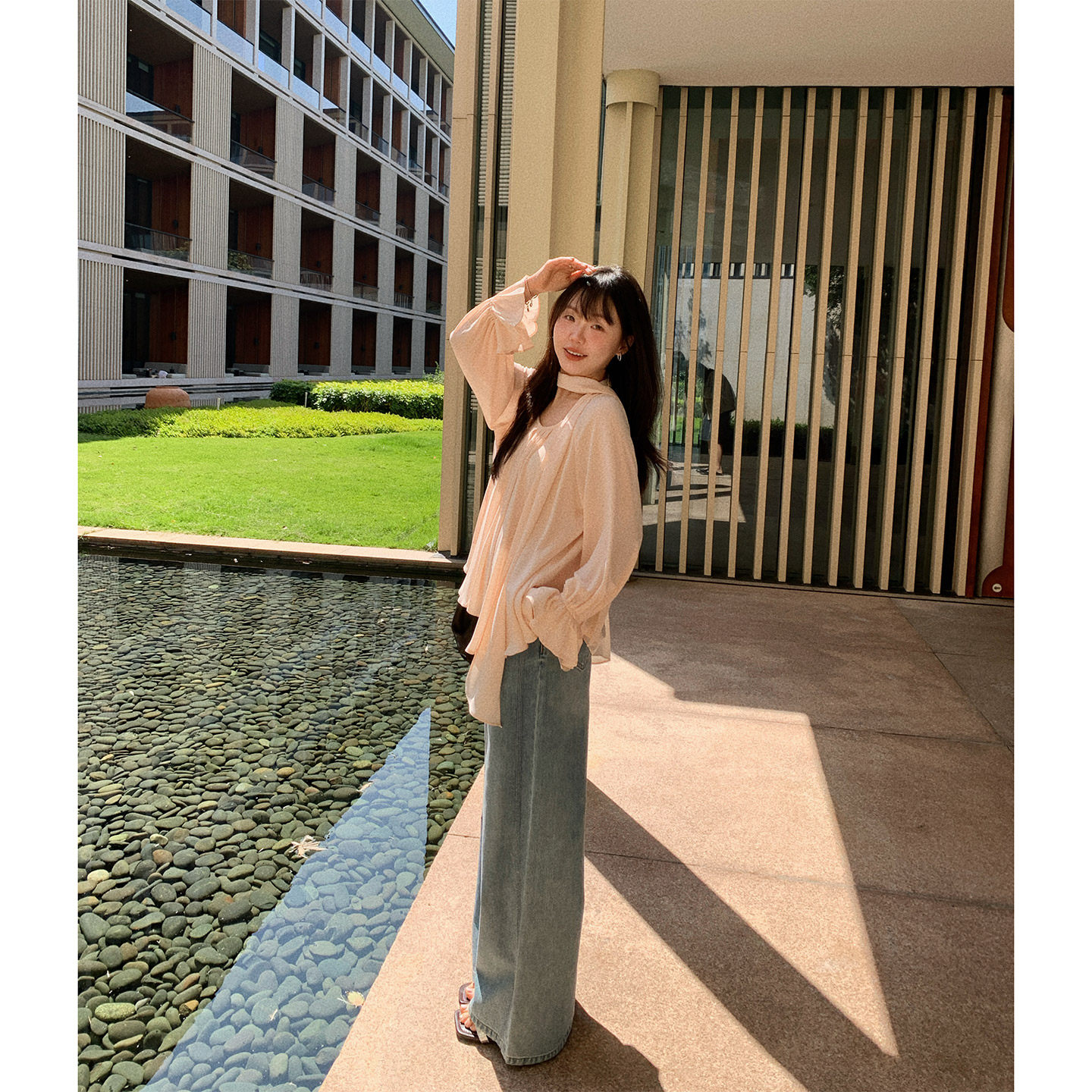 淘Halo Luu蓝色衬衫女春季新款韩系休闲纯棉宽松慵懒风外套长袖衬衣