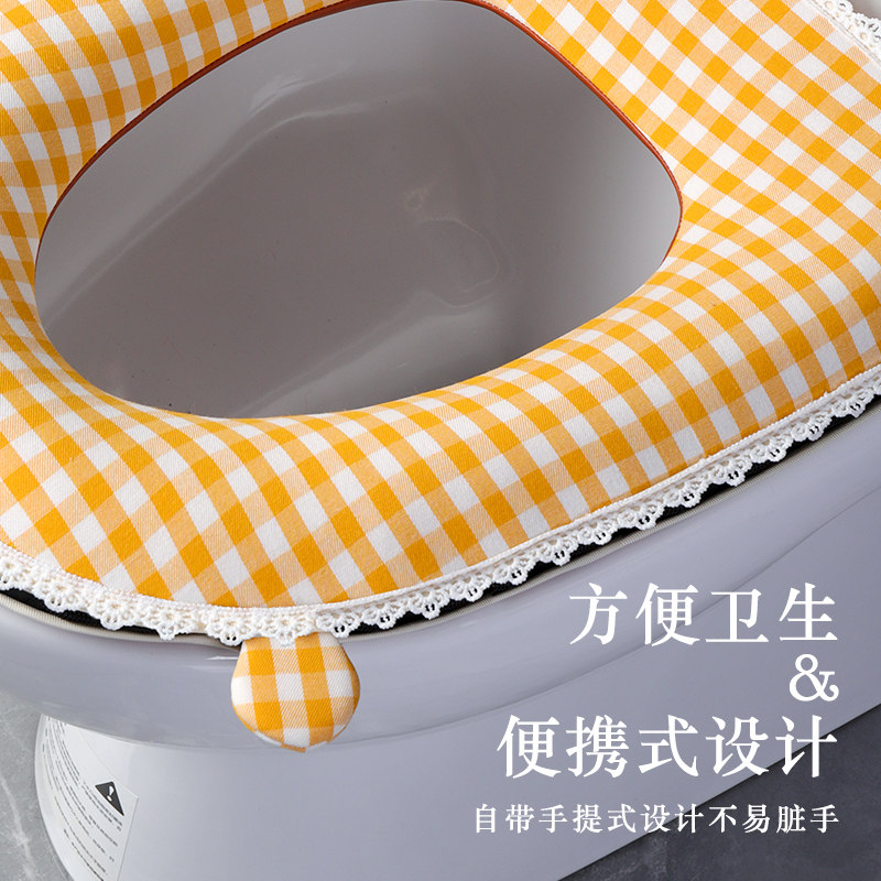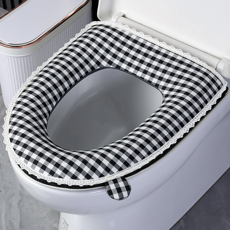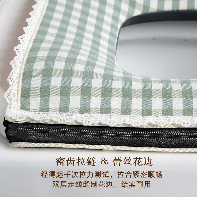 天猫棉格子马桶垫坐垫文艺四季通用家用加大加厚坐便套垫圈防水拉链款