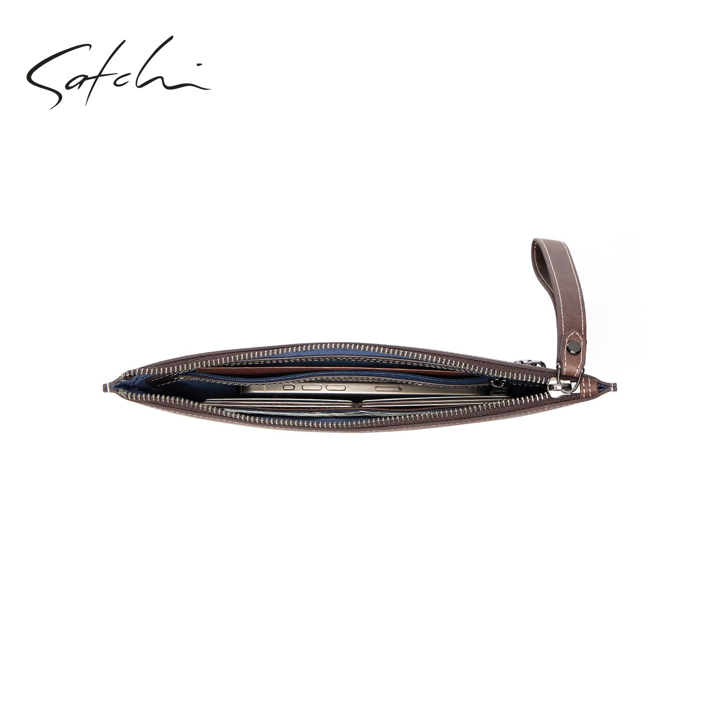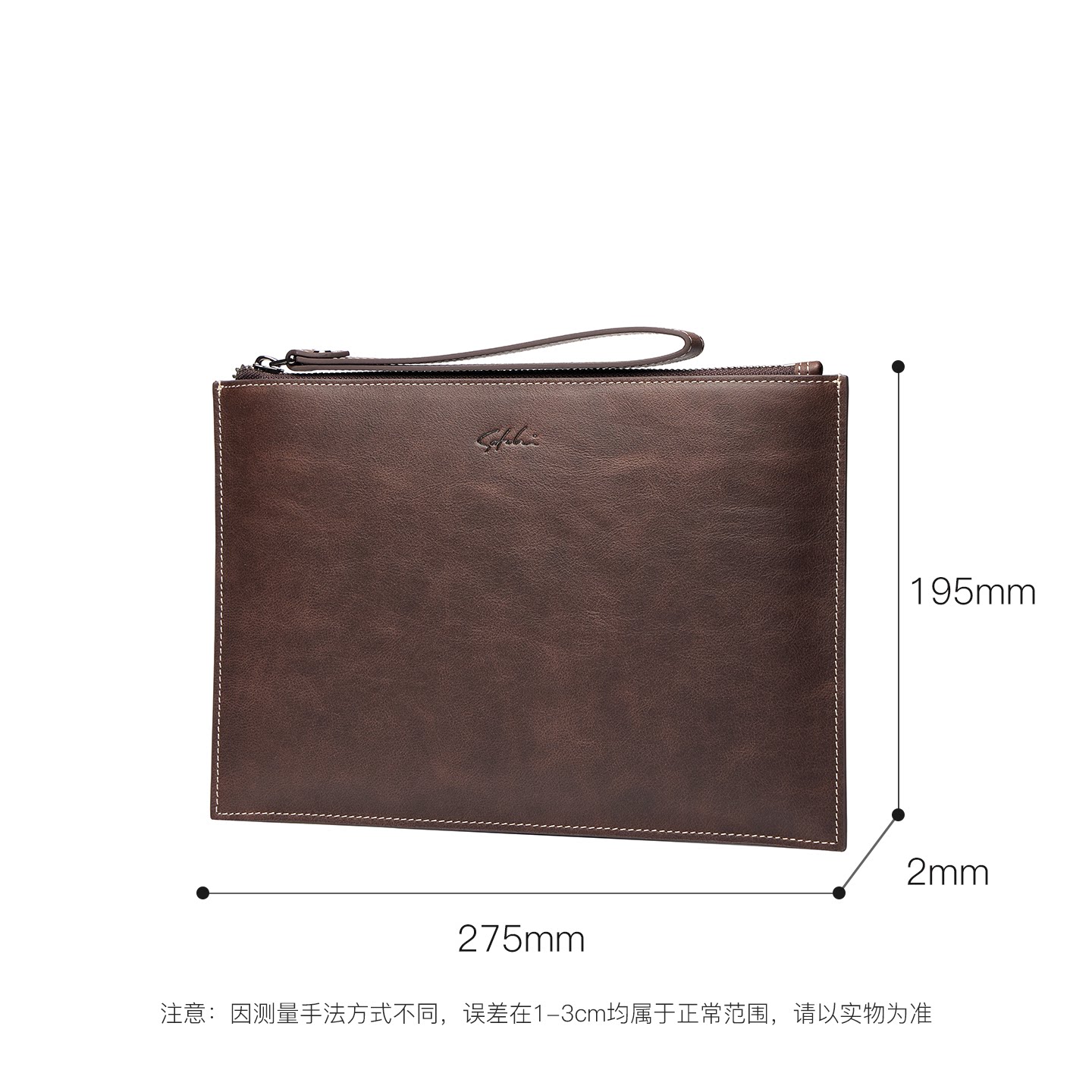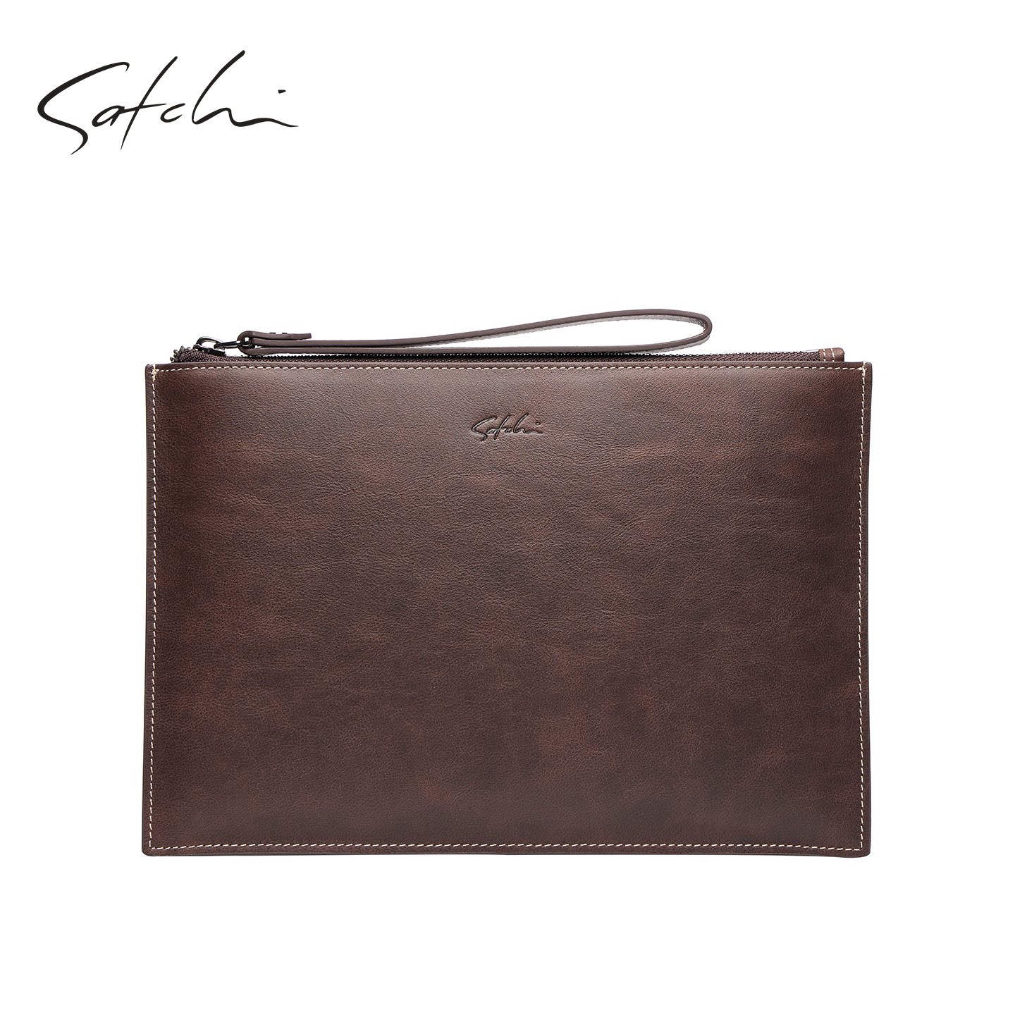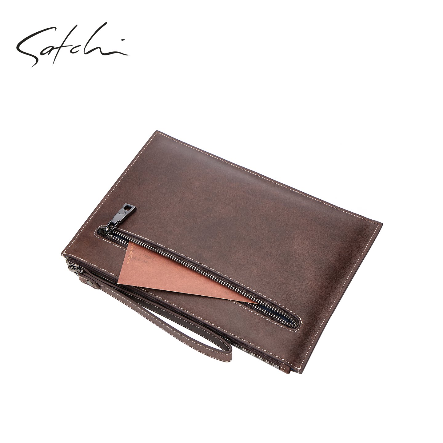 天猫SATCHI/沙驰男士真皮信封包商务复古牛皮手拿包大容量多功能男包