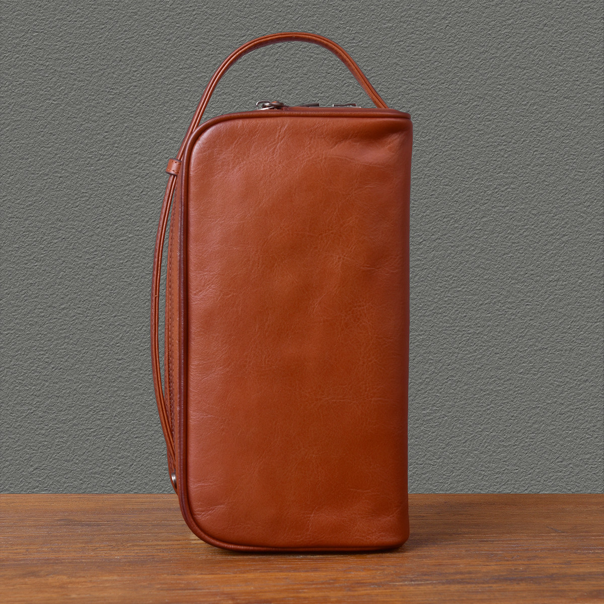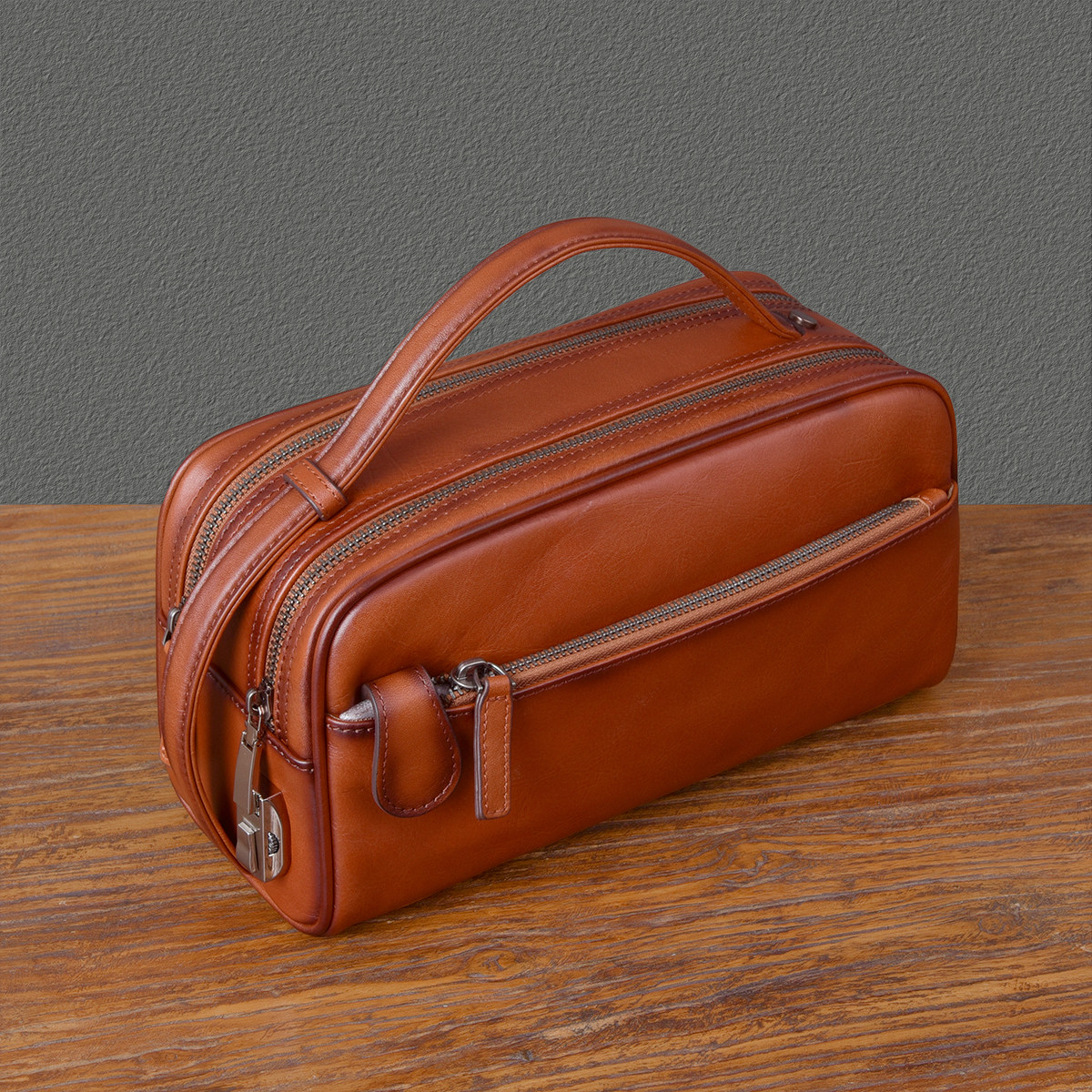 淘宝二十四街 复古风潮流植鞣擦色牛皮手拎包真皮多隔层带锁手拿包