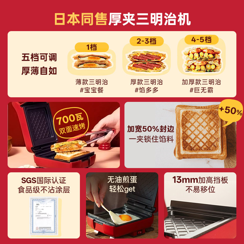 天猫日本丽克特热压三明治机早餐机多功能一体机吐司烤面包机家用小型