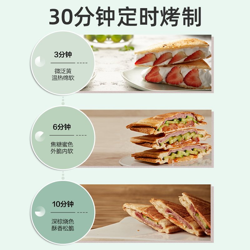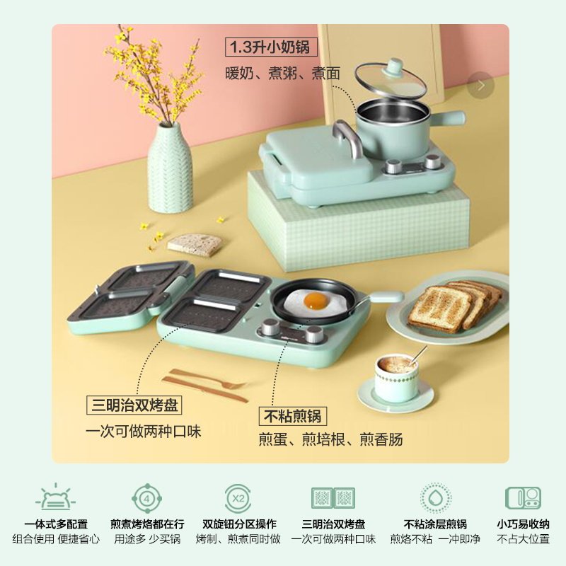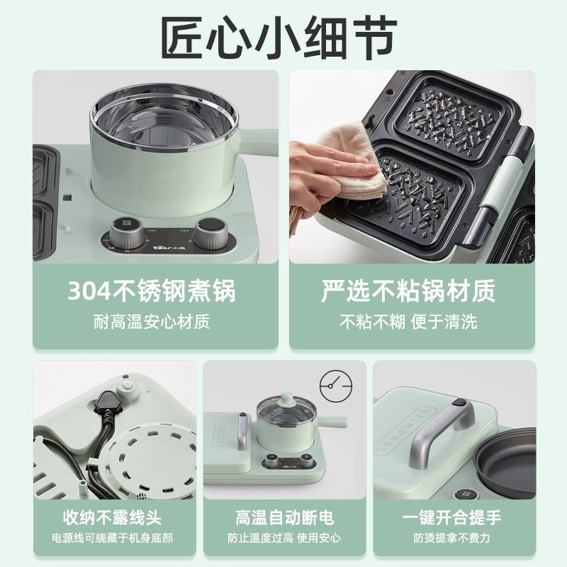 天猫小熊热压三明治机早餐机家用小型轻食机多功能吐司机烤面包机