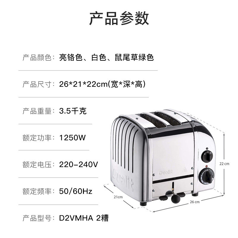 天猫英国Dualit D2VMHA原装进口纯手工家用面包机吐司机多士炉2片烘烤