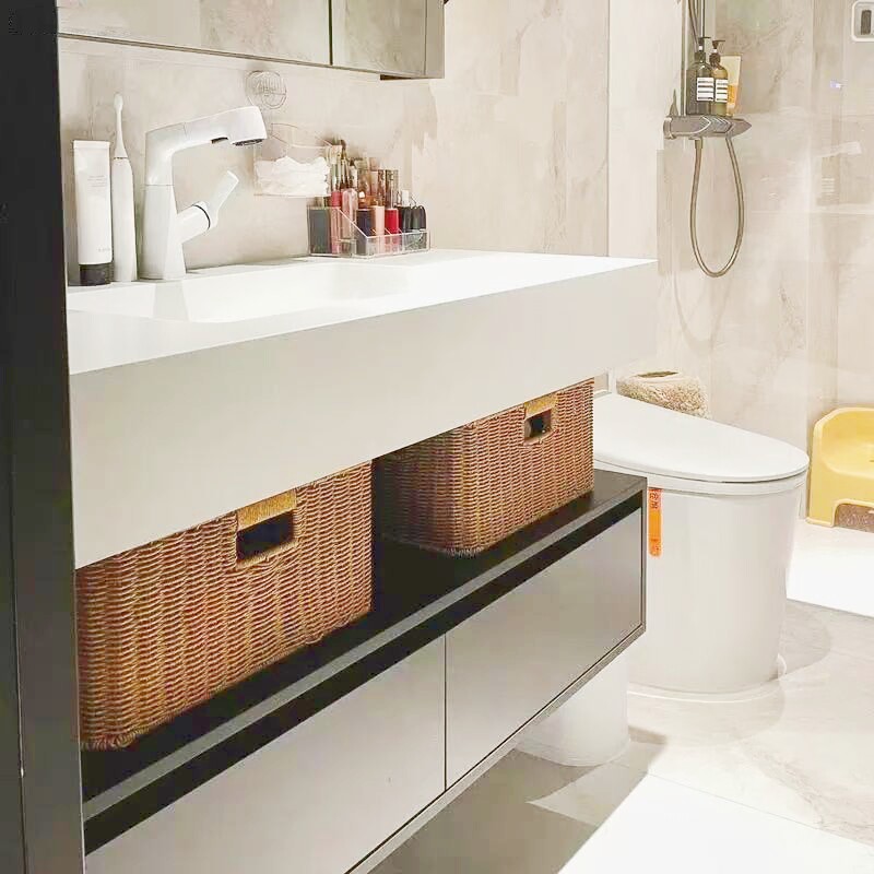 天猫浴室柜下编织收纳筐酒店风卫生间收纳盒仿藤编收纳篮置物筐储物筐