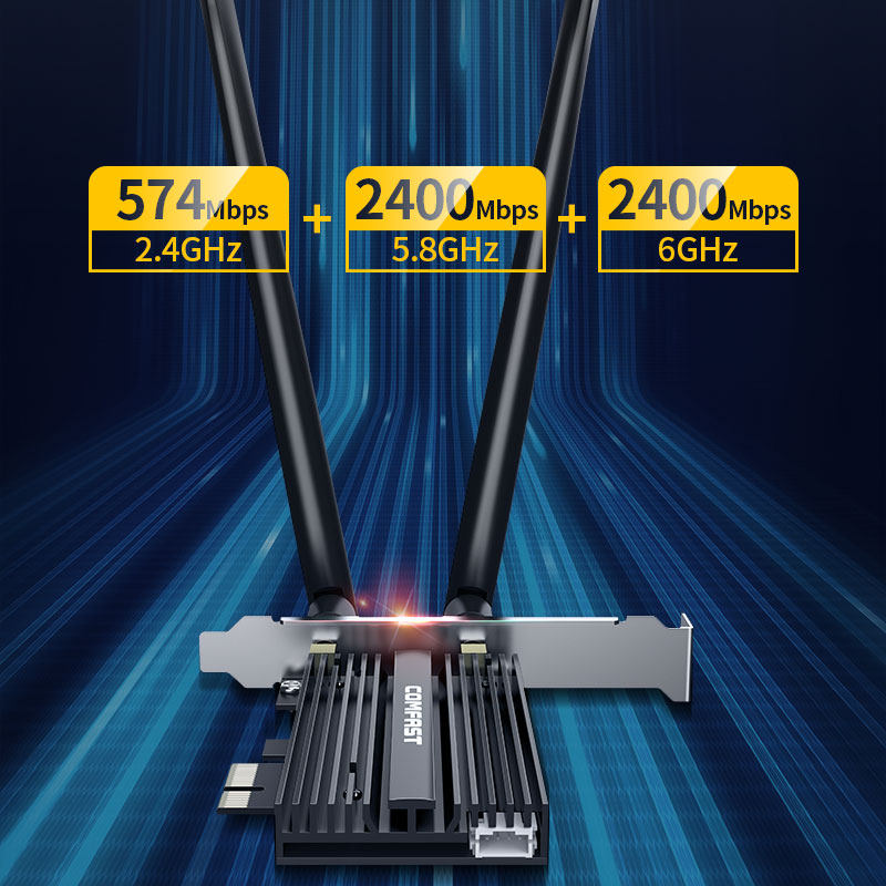 天猫【电竞网卡】COMFAST AX210 WIFI6无线网卡台式机千兆5G三频台式电脑内置PCIE接口蓝牙5.2增强网络wifi接收器