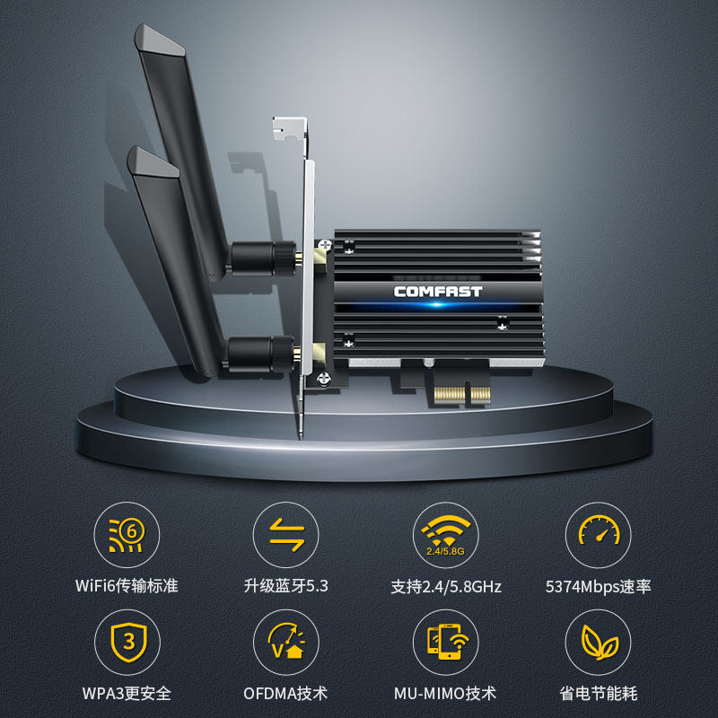 COMFAST AX210 WiFi 6无线网卡专为台式机设计,采用PCIe接口,内置安装便捷,支持最新WiFi 6协议,提供千兆级高速传输,显著降低延迟,提升网络稳定性。其支持5GHz三频并发,有效避免信道拥堵,保障电竞、直播、高清影音等高带宽需求场景流畅运行。搭载蓝牙5.2技术,连接更稳定,传输距离更远,兼容多种外设。AX210采用先进信号处理与天线优化技术,增强信号接收能力,即使在复杂网络环境下也能保持强劲连接。适用于追求极致网络性能的游戏玩家与专业用户,是提升台式机网络体验的理想选择。