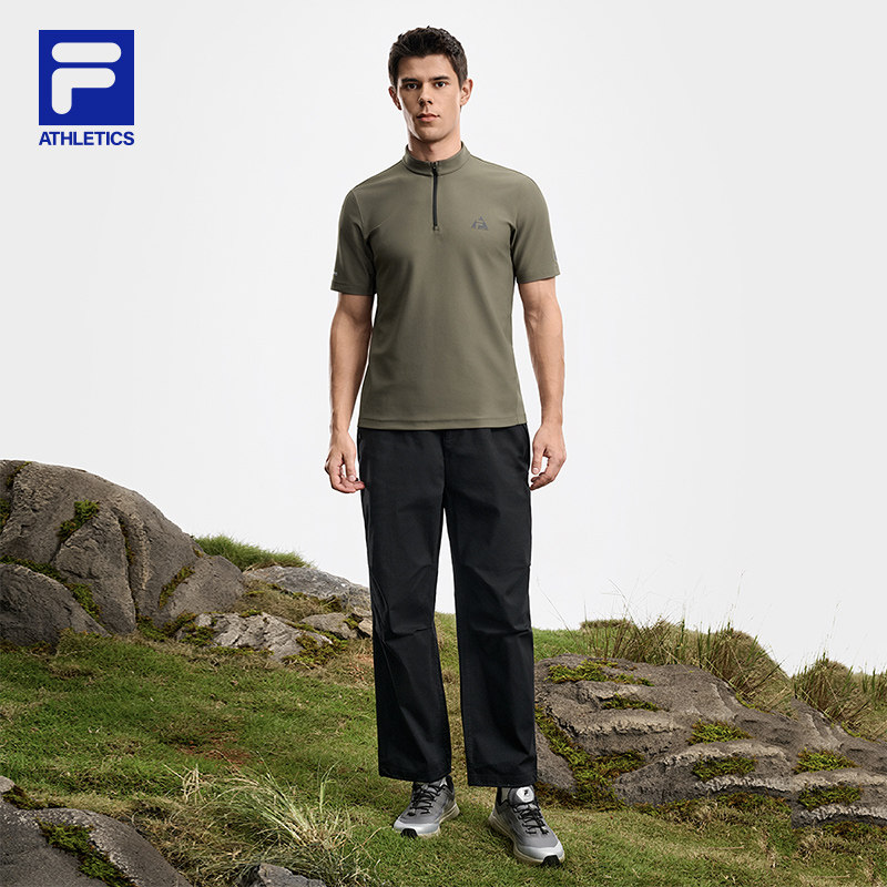 FILA 斐乐短袖T恤男2026春季新款户外半拉链吸湿速干半袖运动上衣