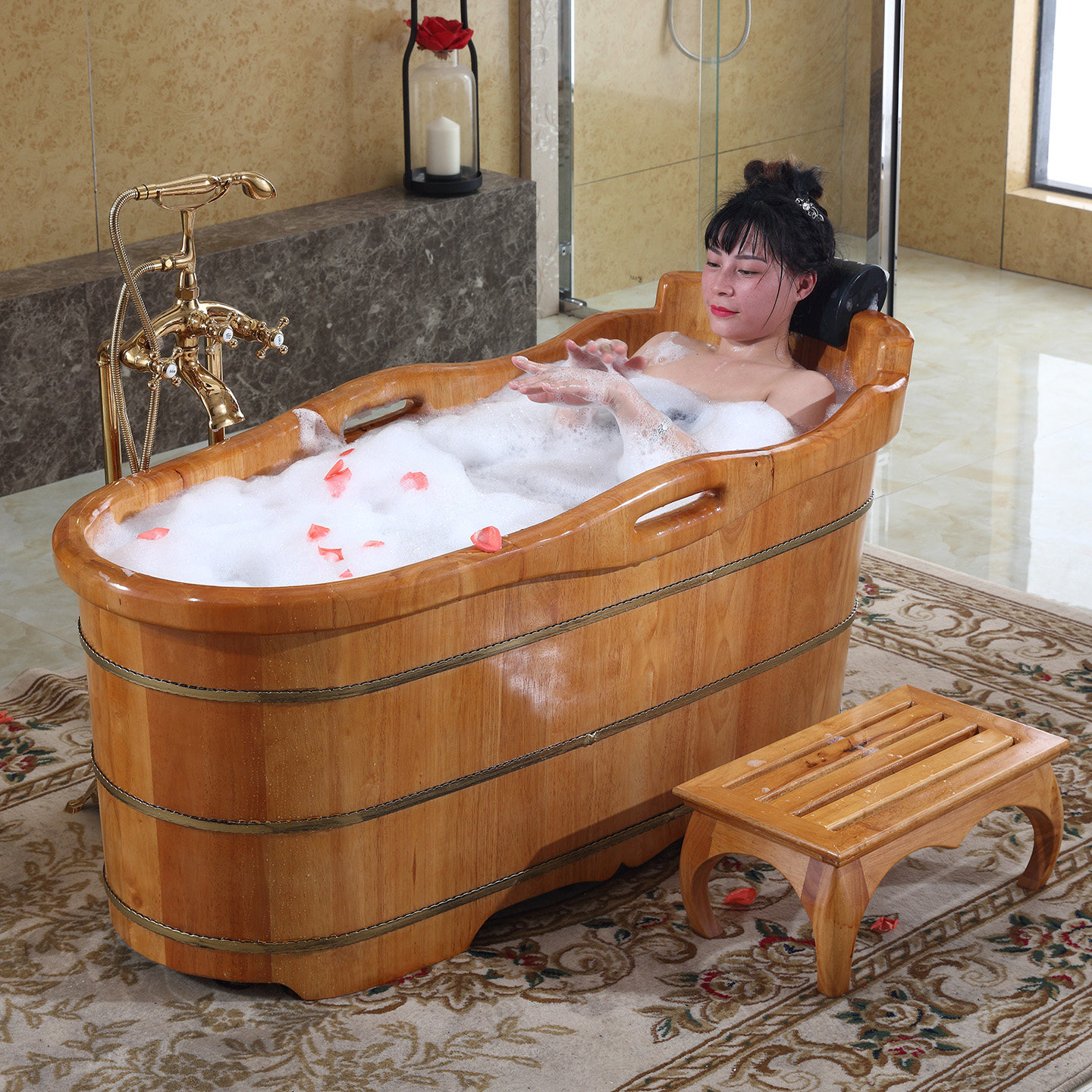 天杉琦一孔带扶手橡木泡澡木桶浴缸成人木桶泡澡桶家用洗澡沐浴盆