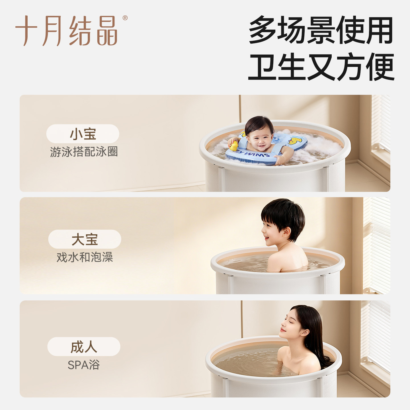 十月结晶宝宝泡澡桶婴儿家用新生儿洗澡盆可折叠浴桶加大号游泳桶