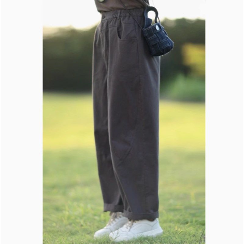 淘宝复古高级灰茧型工装哈伦裤女春秋大码高腰显瘦阔腿裤休闲老爹裤