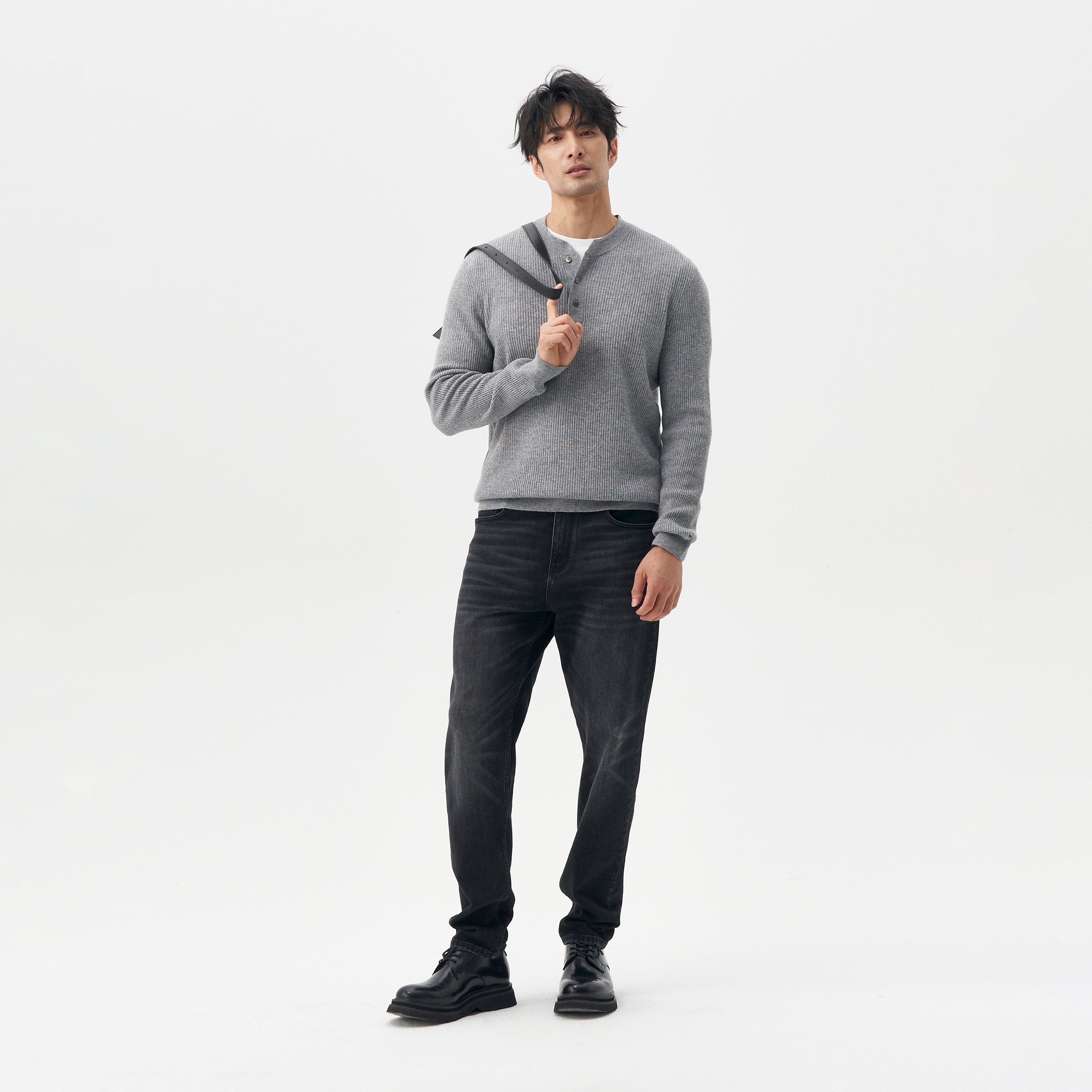 LEZORA格雷系山羊绒针织衫,精选新西兰进口超细美利奴羊毛与优质山羊绒混纺而成,触感柔滑细腻,保暖性卓越。经典亨利领设计,简约大方,贴合颈部线条,彰显男士儒雅气质。采用高密度针织工艺,结构紧密、不易变形,兼具舒适与挺括感。低饱和度的格雷色调,百搭耐看,轻松驾驭商务休闲多种场合。无论是单穿还是内搭,皆能展现低调奢华的质感。LEZORA坚持高品质标准,注重细节与穿着体验,为现代男性打造兼具温度与风度的秋冬必备单品。