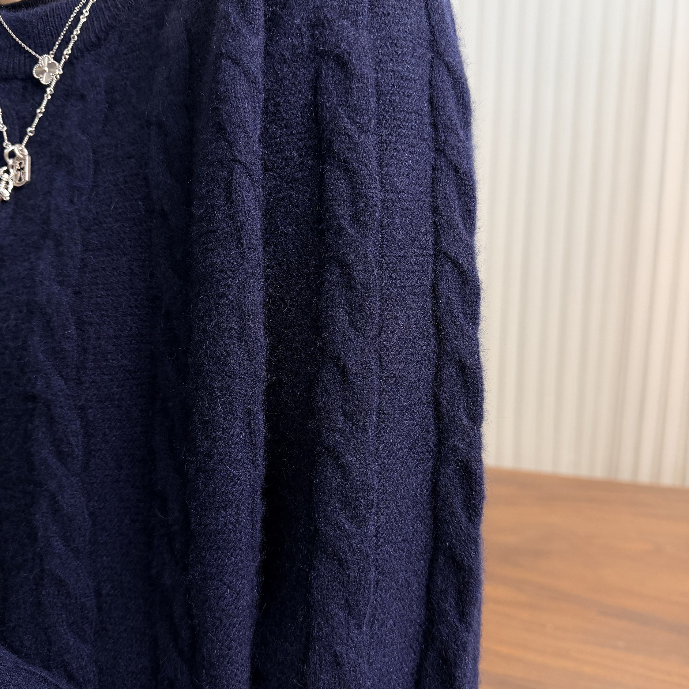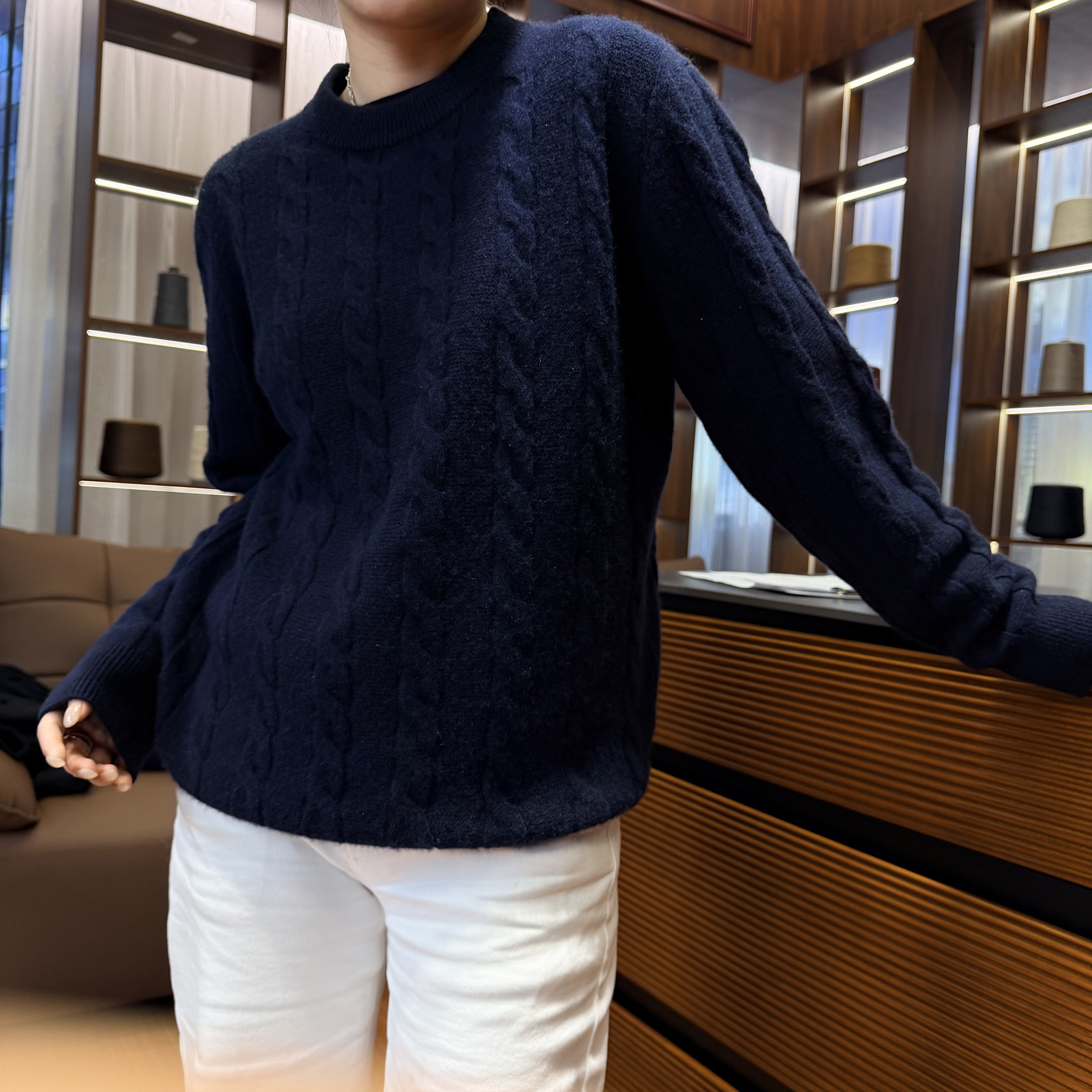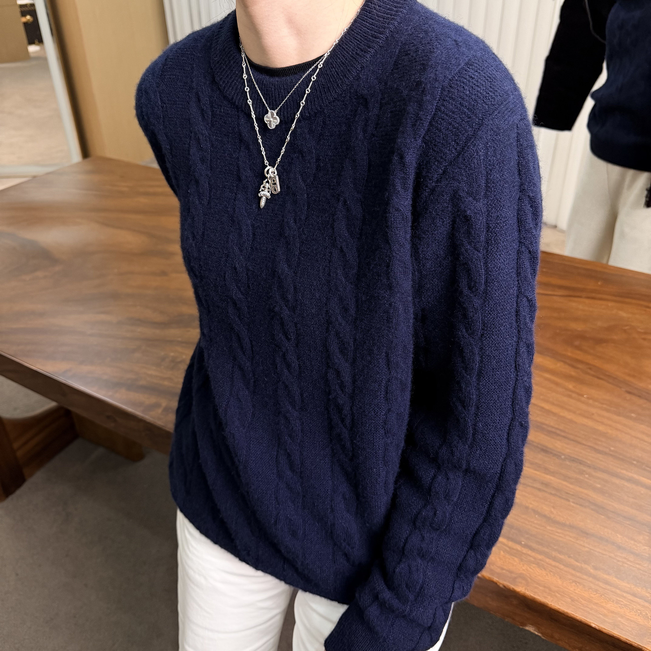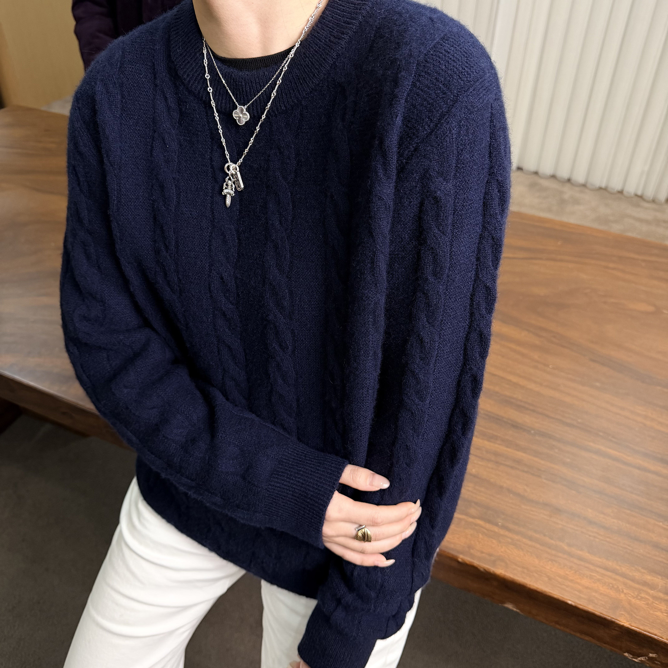 淘宝SEASON MARK老钱风藏青绞花羊绒针织衫商务休闲纯色保暖毛衣男士