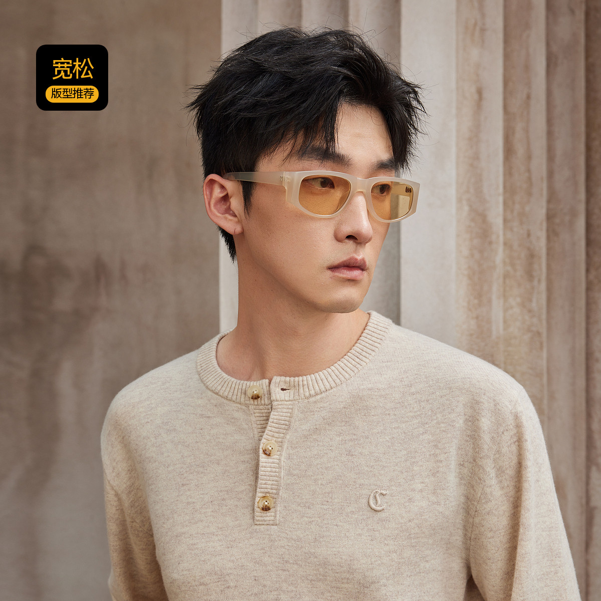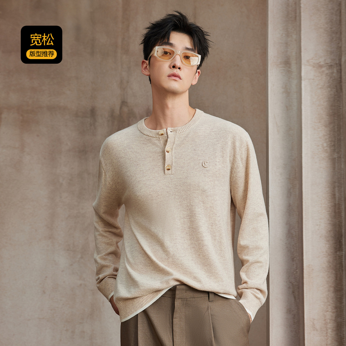淘恒源祥100%纯羊绒衫男秋冬薄款针织毛衣纯色套头圆领打底羊毛衫男