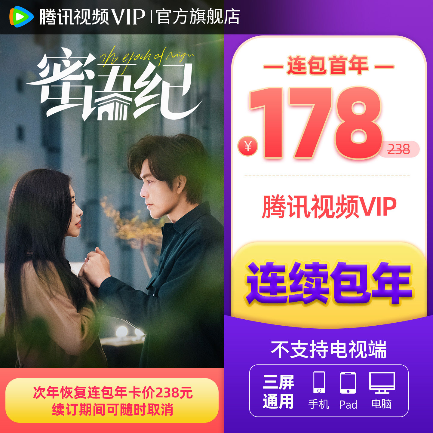 天猫【连续包年】腾讯视频VIP会员年卡不支持电视端1年费 白日提灯