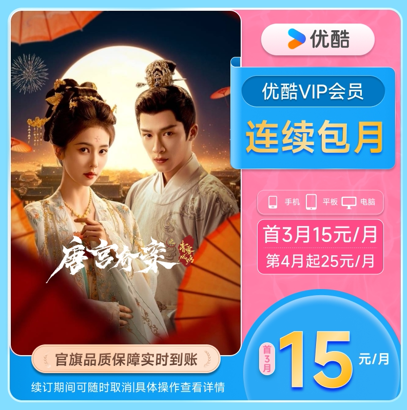 天猫【优酷VIP连续月卡】优酷VIP1个月会员连续包 不支持电视