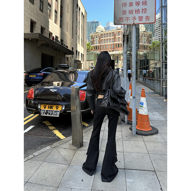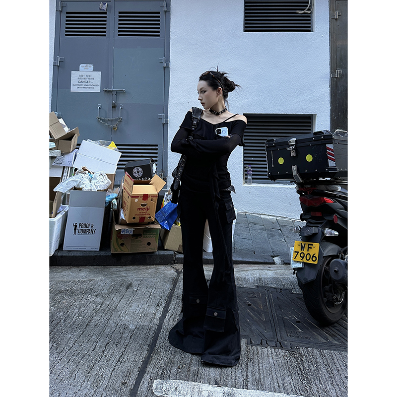 淘宝Fanptntox 休闲裤女秋季新款超百搭显瘦长裤黑色工装多口袋喇叭裤