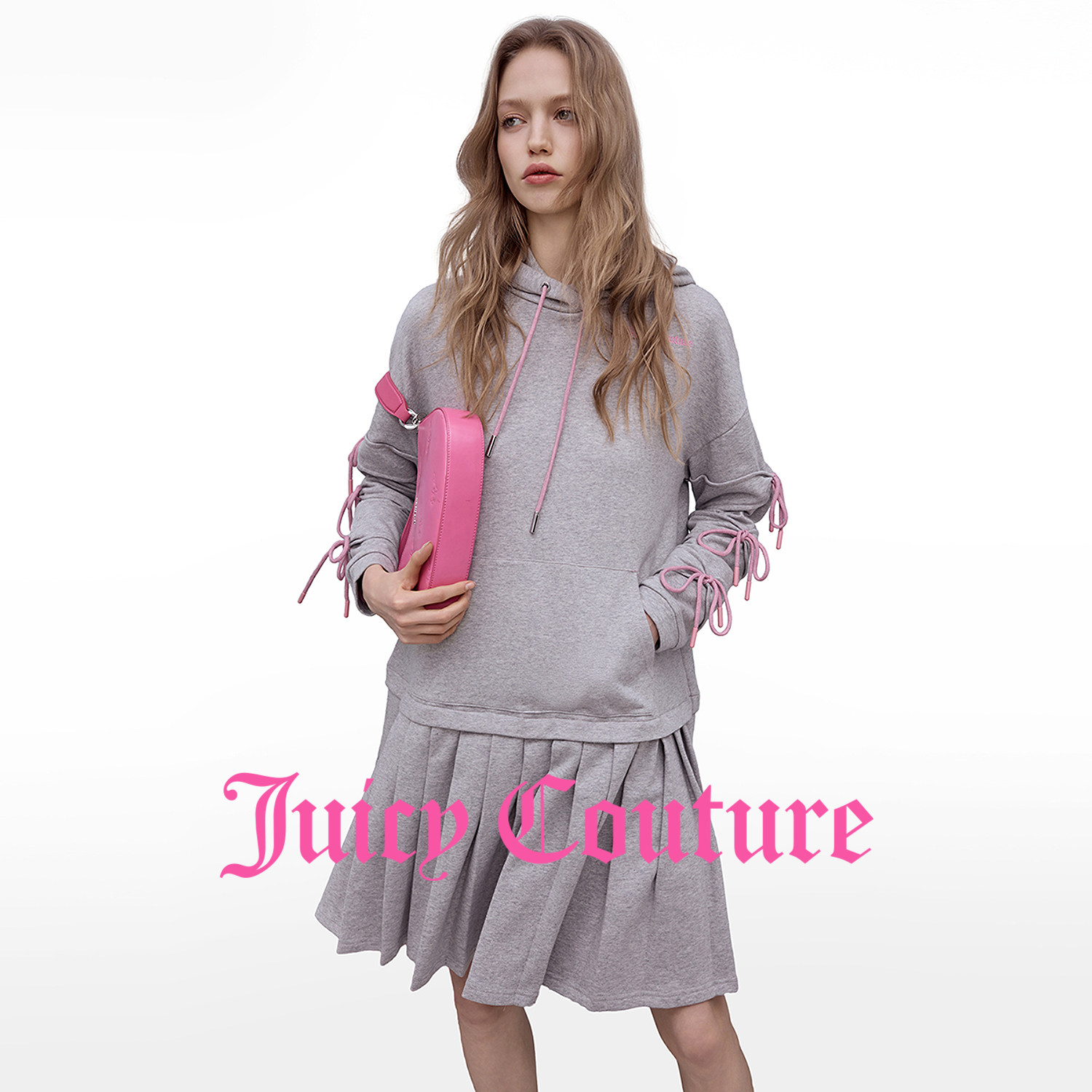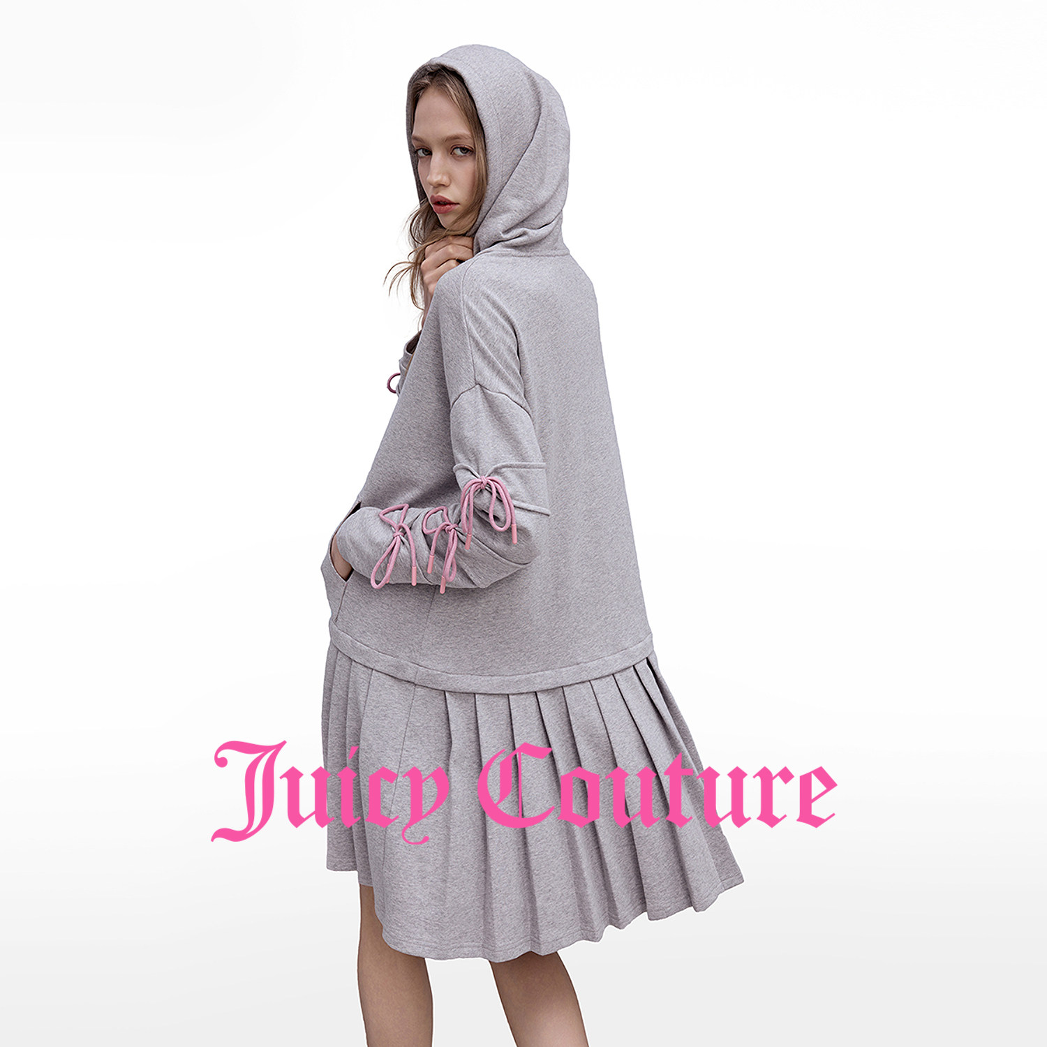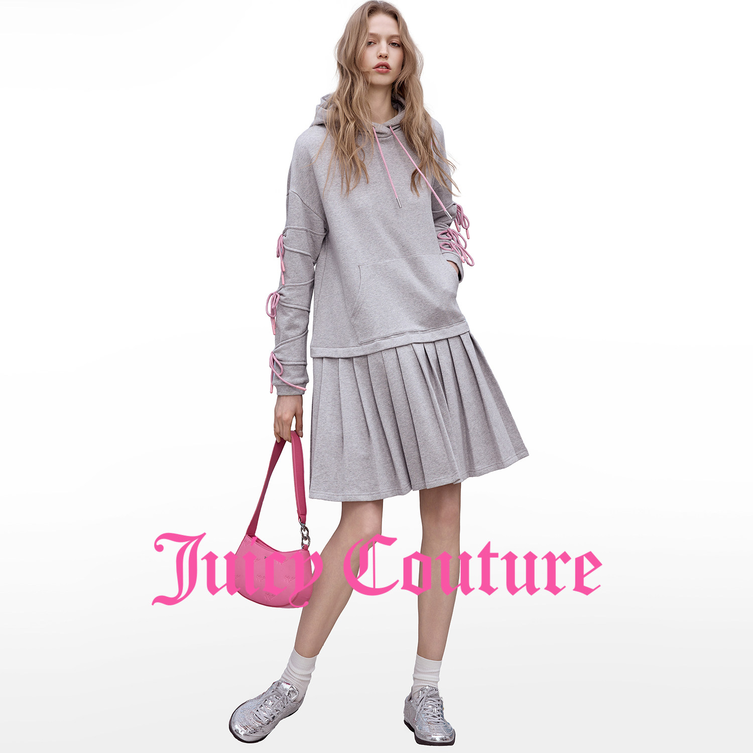 天猫Juicy Couture橘滋连衣裙女26夏季新款灰粉撞色百褶卫衣短裙子