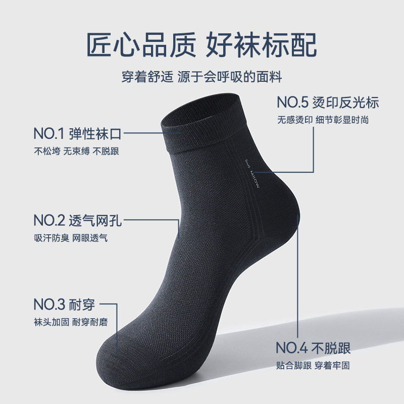 猫人男袜纯棉中筒袜春夏吸汗透气抗菌防臭全棉长袜商务休闲袜薄款