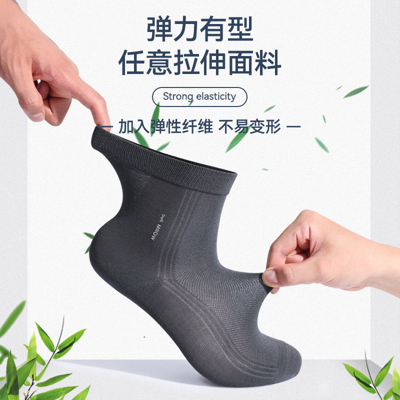 猫人竹纤维袜子男士中筒袜黑色抑菌防臭透气吸汗四季商务男袜长袜
