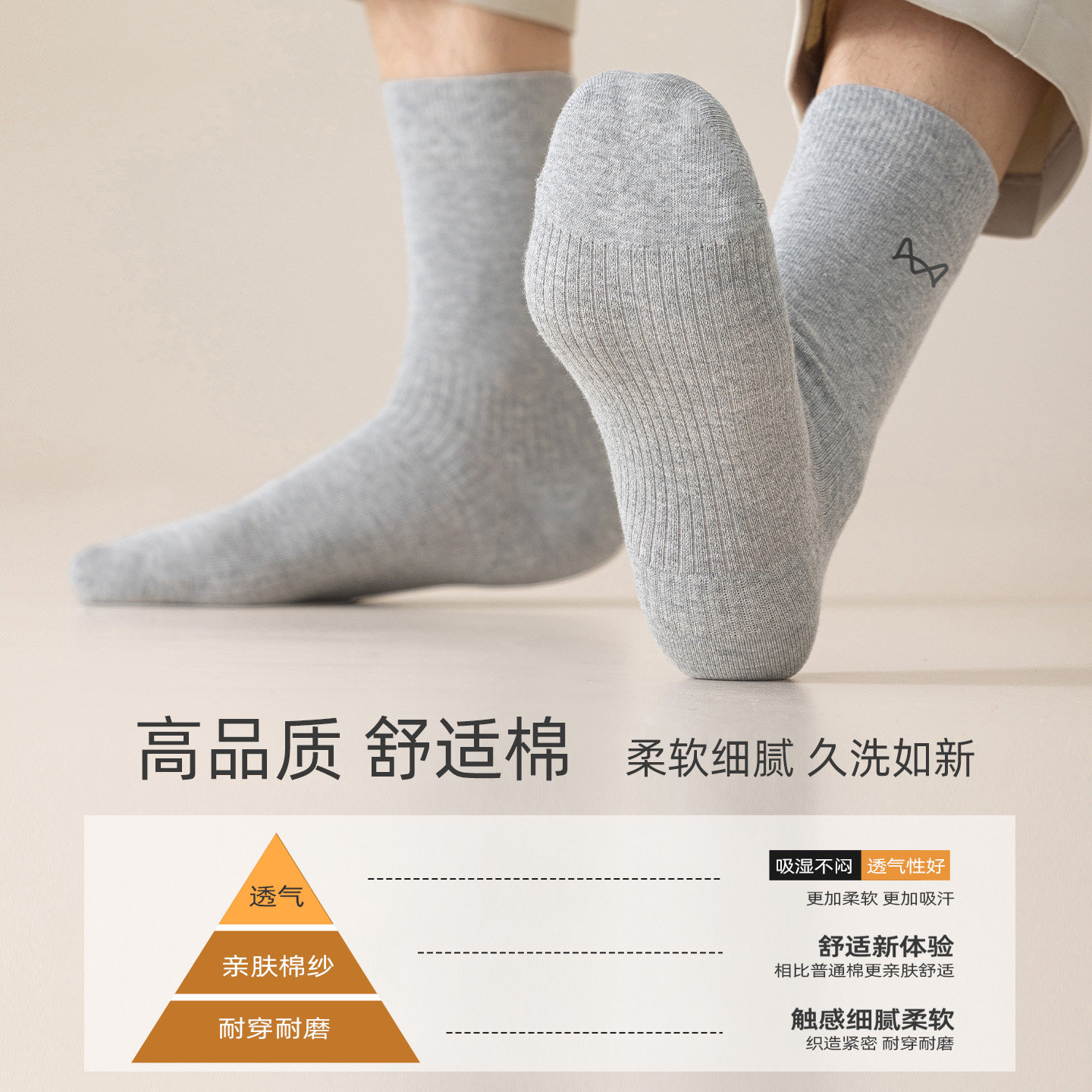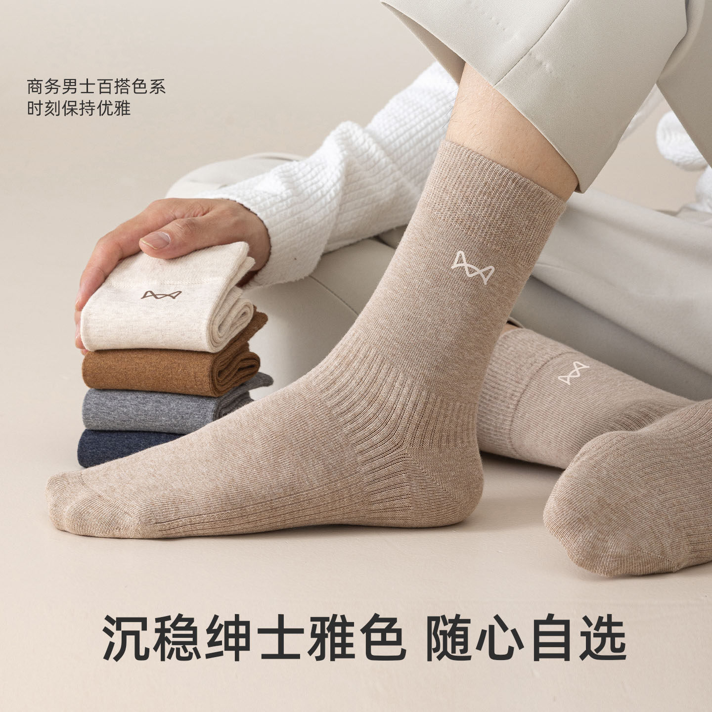 淘华山泉男袜子秋冬保暖吸湿排汗中筒袜棉质螺纹袜商务居家舒适A06C