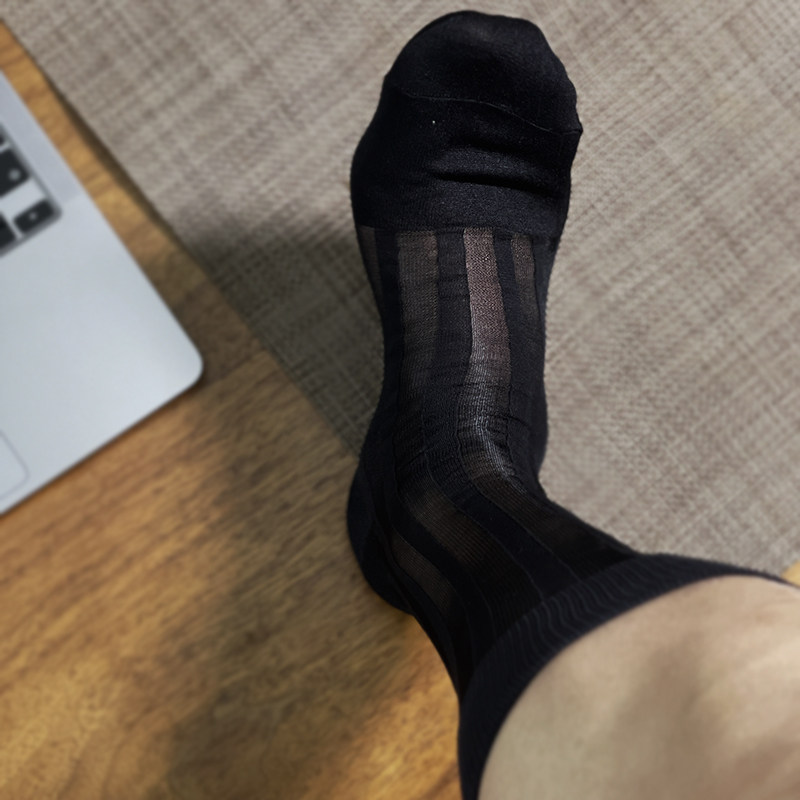 淘红辣椒男士丝袜夏季薄款抗菌中筒袜子正装商务超薄男袜夏天短袜子