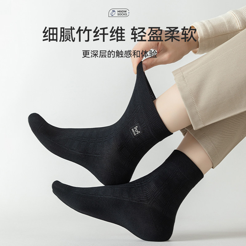 猫人袜子男士夏季薄款冰丝中筒男袜竹纤维防臭抑菌网眼透气黑长袜