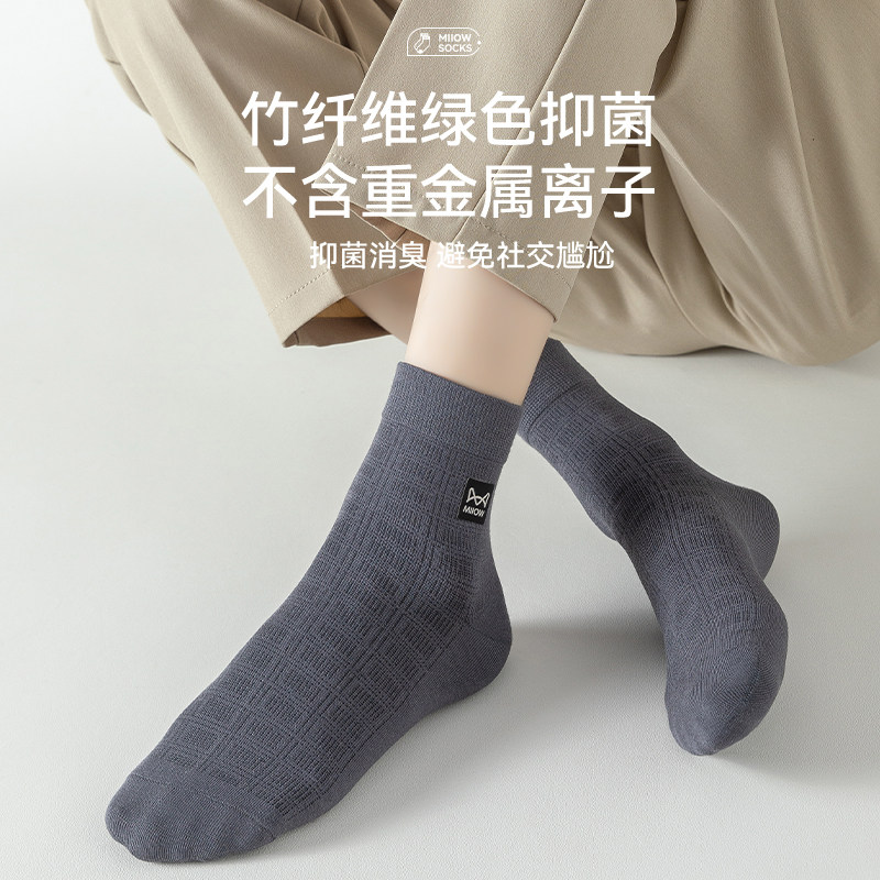 猫人男袜纯棉中筒袜春夏吸汗透气抗菌防臭全棉长袜商务休闲袜薄款