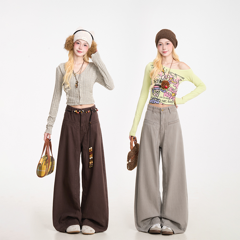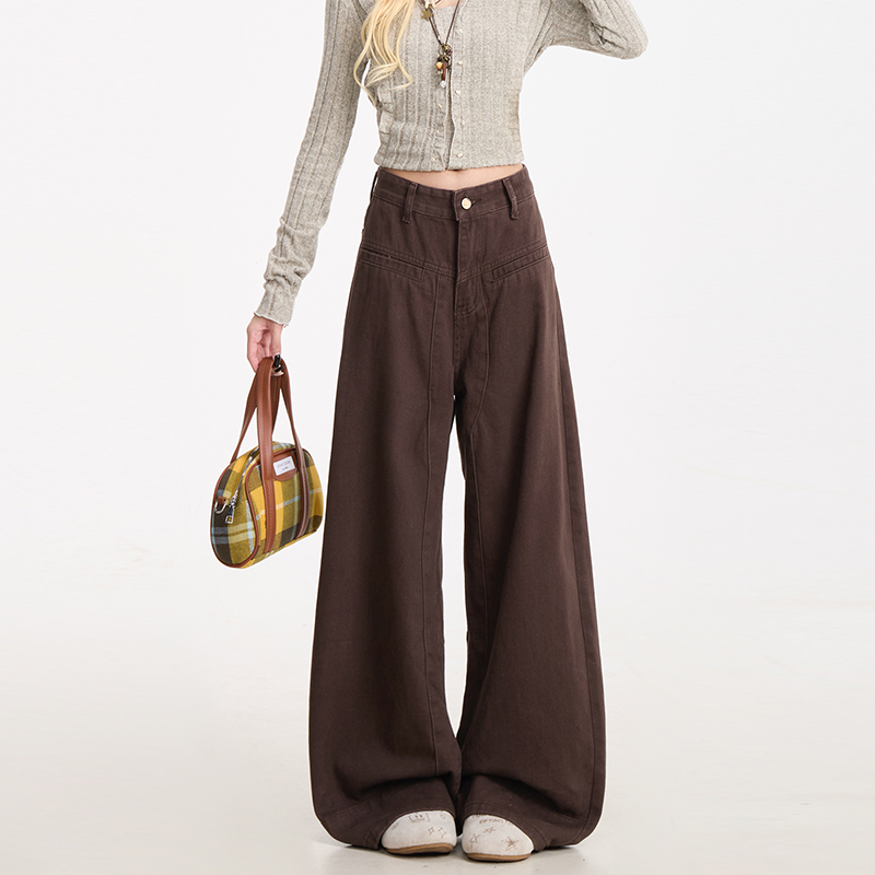 淘宝NERESUM咖啡色工装裤女潮牌复古垂感直筒裤新款显瘦百搭阔腿裤
