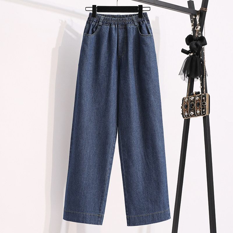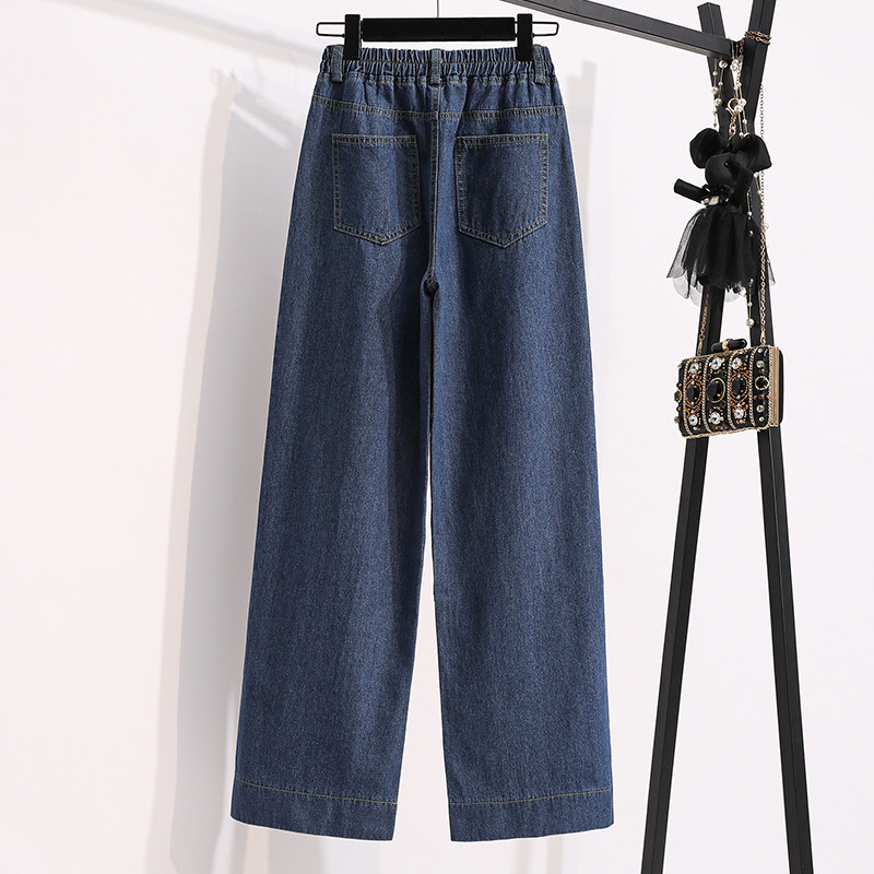 淘宝撤柜奥特莱斯清仓捡漏大码港风工装牛仔阔腿裤女宽松深色直筒裤子