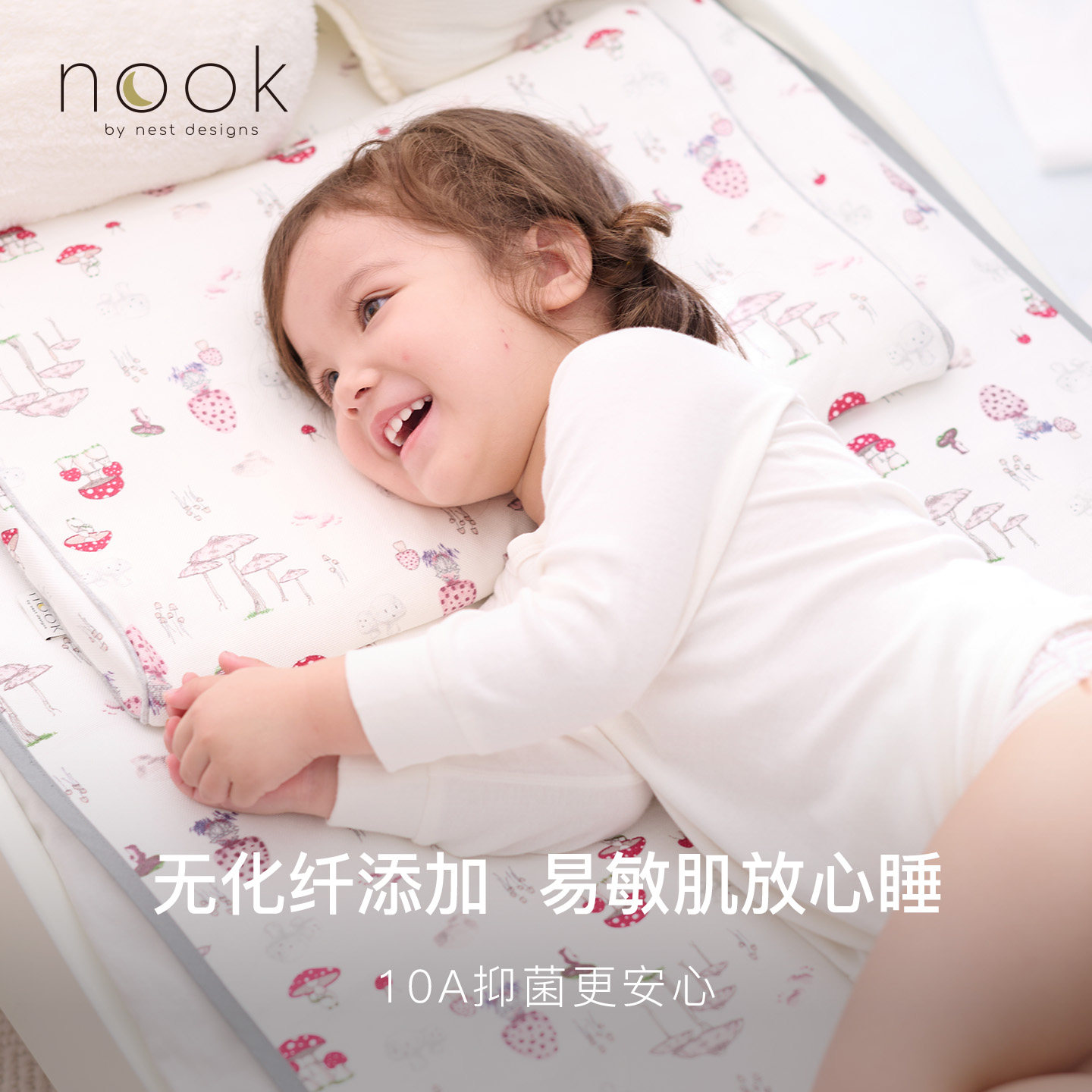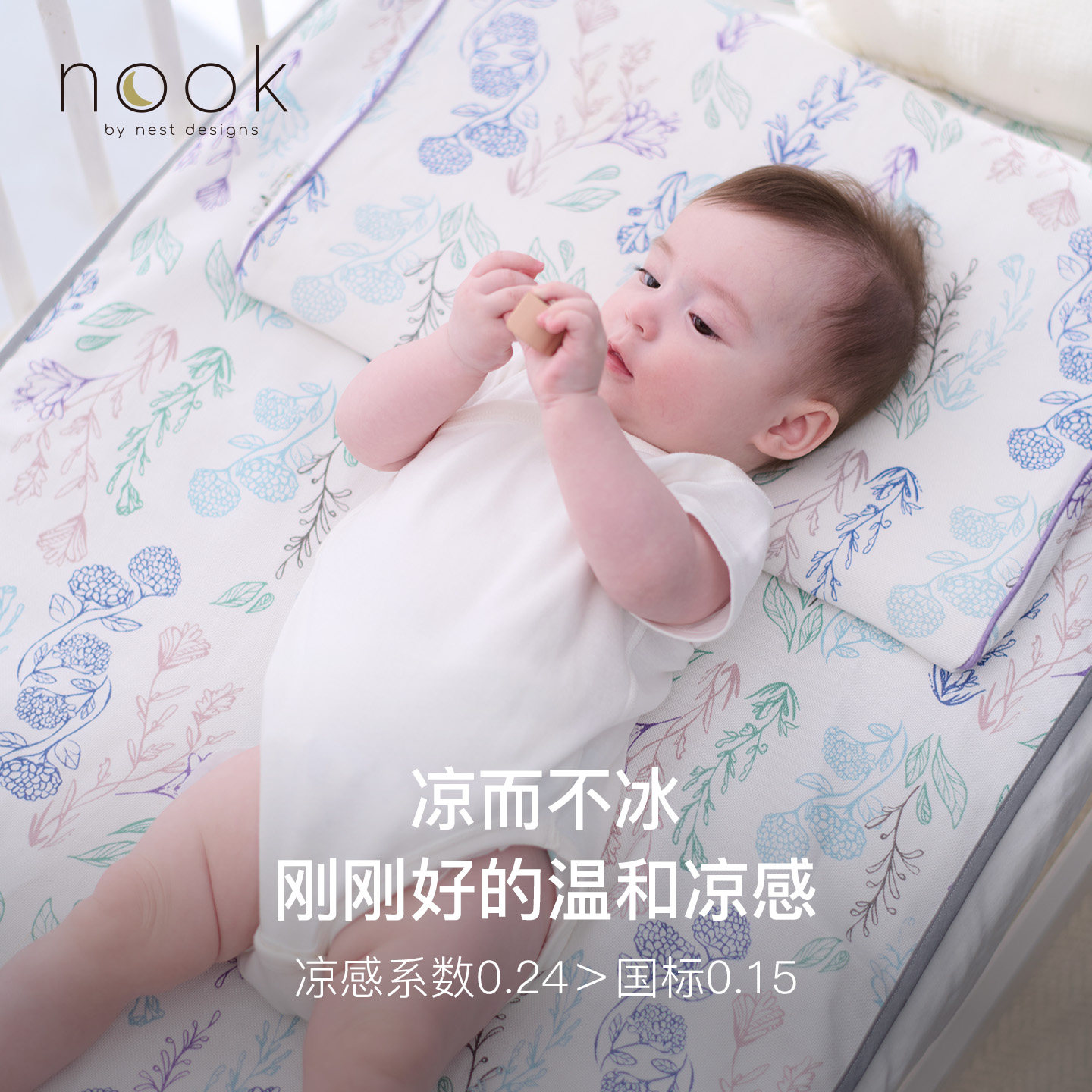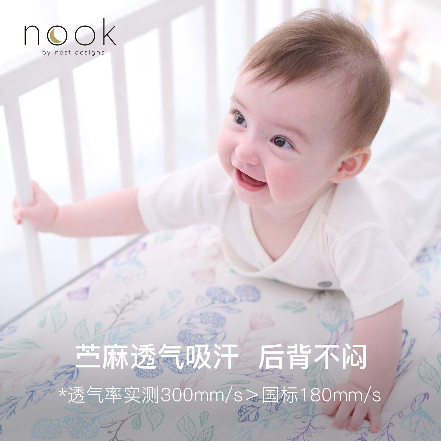 NestDesigns婴儿苎麻凉席专为夏季宝宝设计,采用天然苎麻纤维,透气吸湿、散热快,有效预防闷热和痱子,让宝宝安睡整夏。席面柔软亲肤,无化学添加,通过婴幼儿A类安全标准,呵护娇嫩肌肤。防滑底面设计,稳固贴合床垫,适用于婴儿床、幼儿园午睡垫等多种场景。可机洗易打理,耐用不易变形。简约素雅的外观,兼具实用与美观,是宝妈夏日必备的贴心之选,为宝宝打造清爽舒适的睡眠环境,助力健康成长。