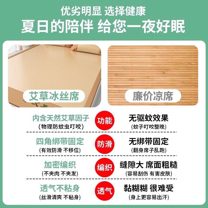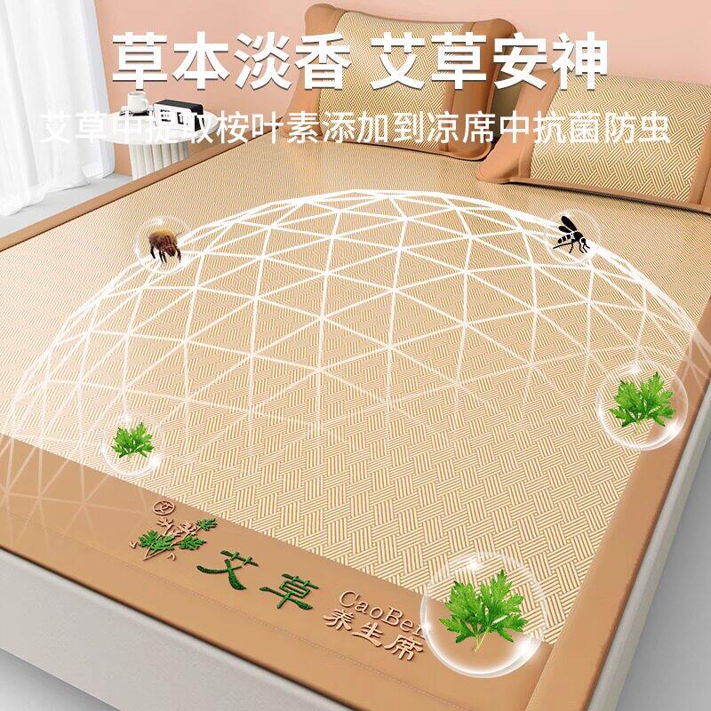 天艾草冰丝凉席夏天2026新款宿舍竹席草席藤席夏季空调软席子可折叠