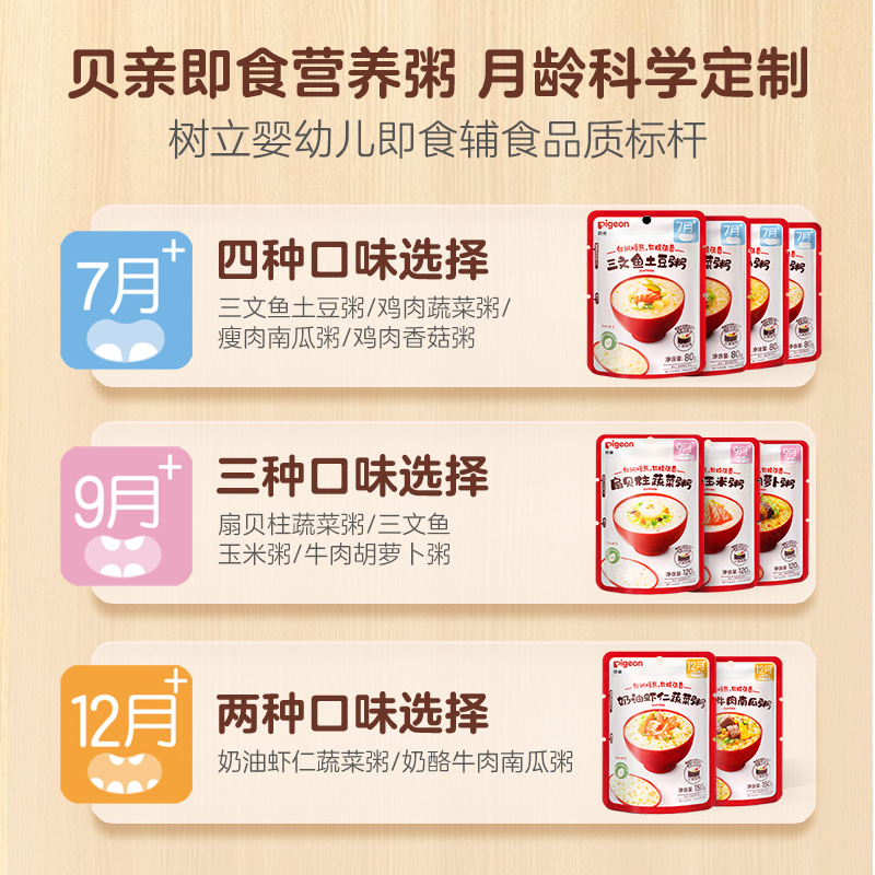 天猫贝亲宝宝婴儿辅食粥进阶双口味120g*4包营养即食粥9月龄+
