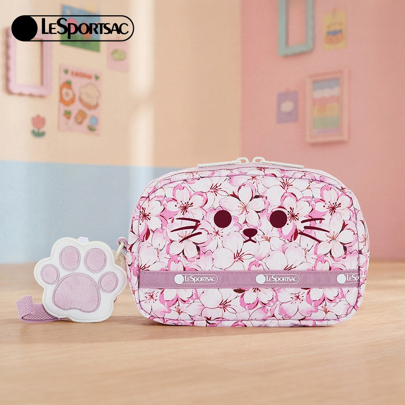 天猫LeSportsac乐播诗新款碎花萌宠系列可爱休闲喵爪樱花手机包手拿包