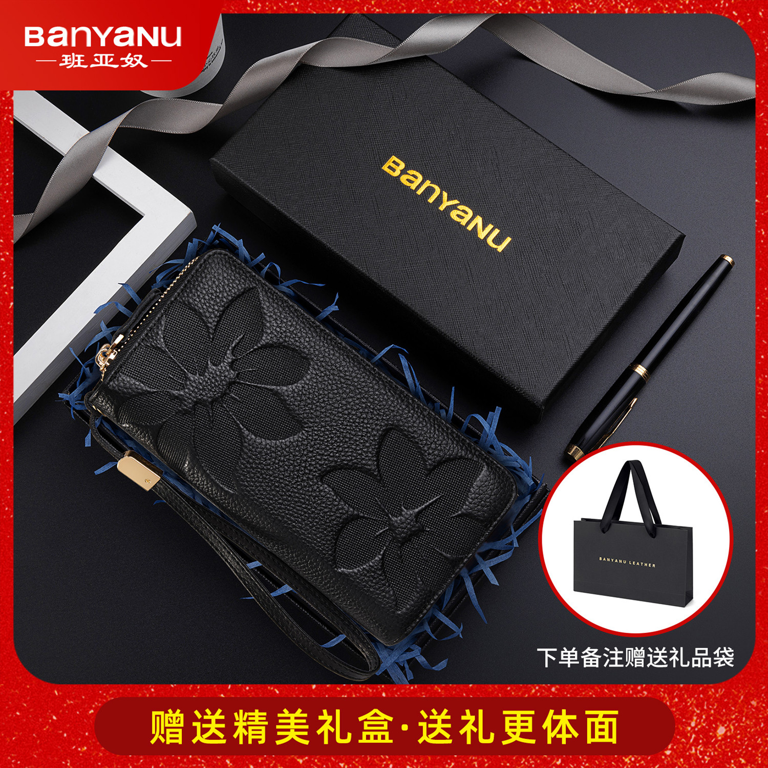 天高档软牛皮长款手拿钱包女2026新款真皮大容量皮夹放手机气质手包