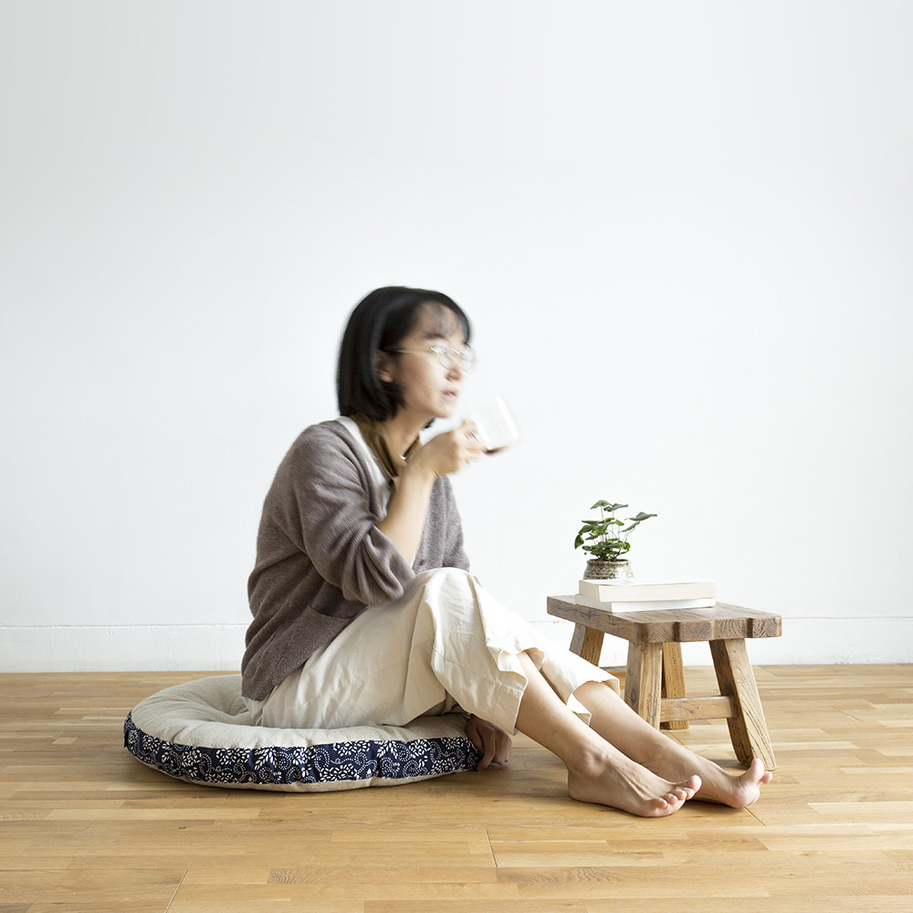 淘宝蓝印花布棉麻拼布蒲团薄坐垫瑜伽打坐地垫座椅垫复古水乡风情坐垫
