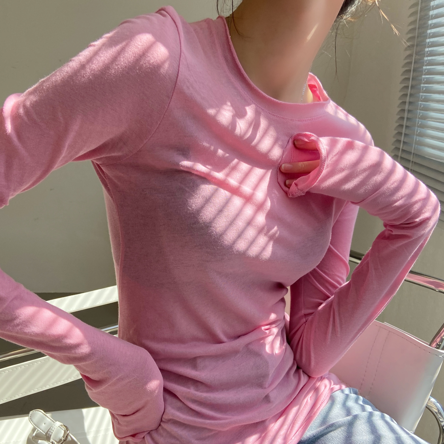 2026年新款白色内搭长袖T恤打底衫,采用轻薄透气的微透面料,触感柔滑如面膜般亲肤,兼具舒适与时尚。修身版型巧妙勾勒女性曲线,单穿或作为内搭皆宜,轻松搭配外套、连衣裙或防晒开衫。微透设计增添一丝朦胧美感,又不失得体,适合春夏日常通勤、出游等多种场合。同时具备UPF防晒功能,有效阻挡紫外线,贴心呵护肌肤。简约纯白色调百搭不挑人,是打造清新、优雅造型的必备单品,兼顾实用性与时尚感,轻松演绎2026春夏潮流新风尚。