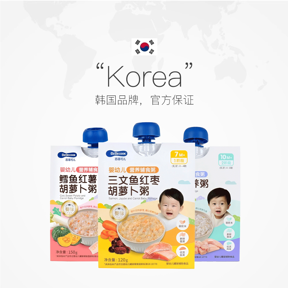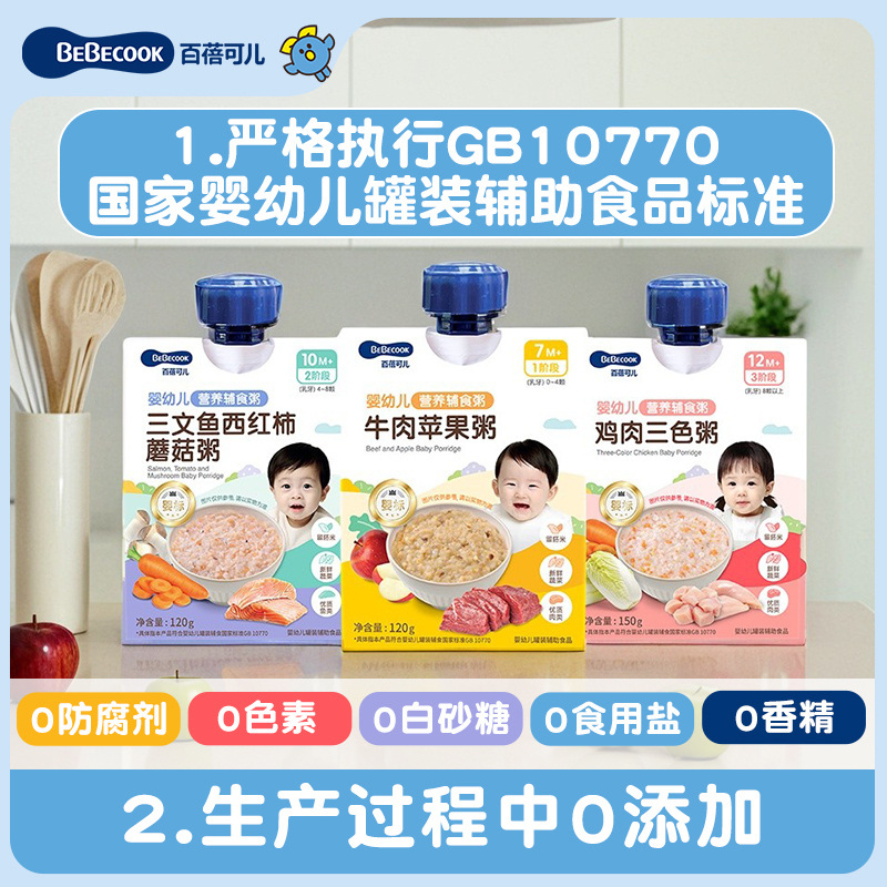天猫【自营】BEBECOOK婴幼儿辅食粥7月10月+宝宝外出即食营养米粉粥