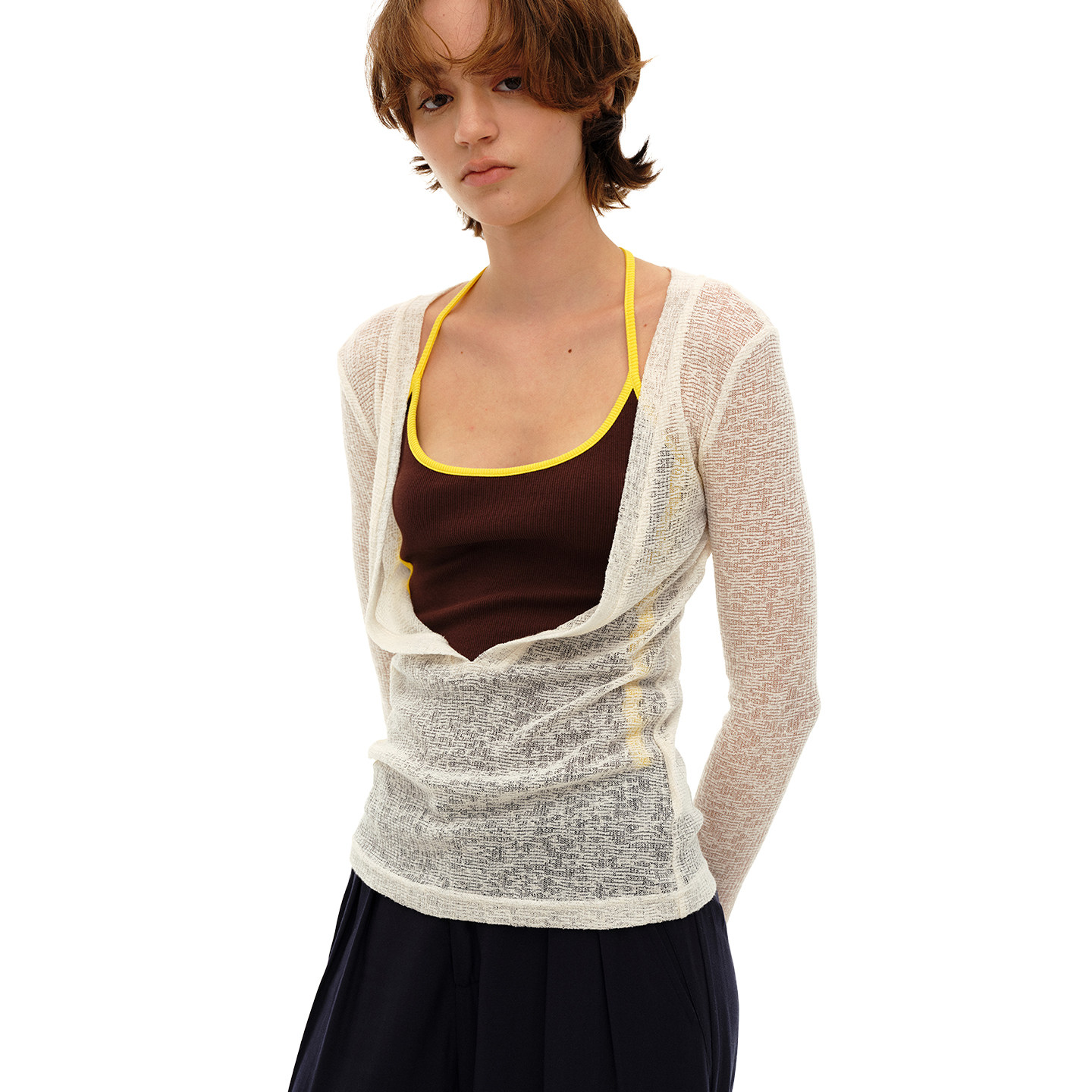 淘MRS Studios 轻薄雪花棉舒适亲肤背后垂荡设计 亨利领长袖防晒T恤