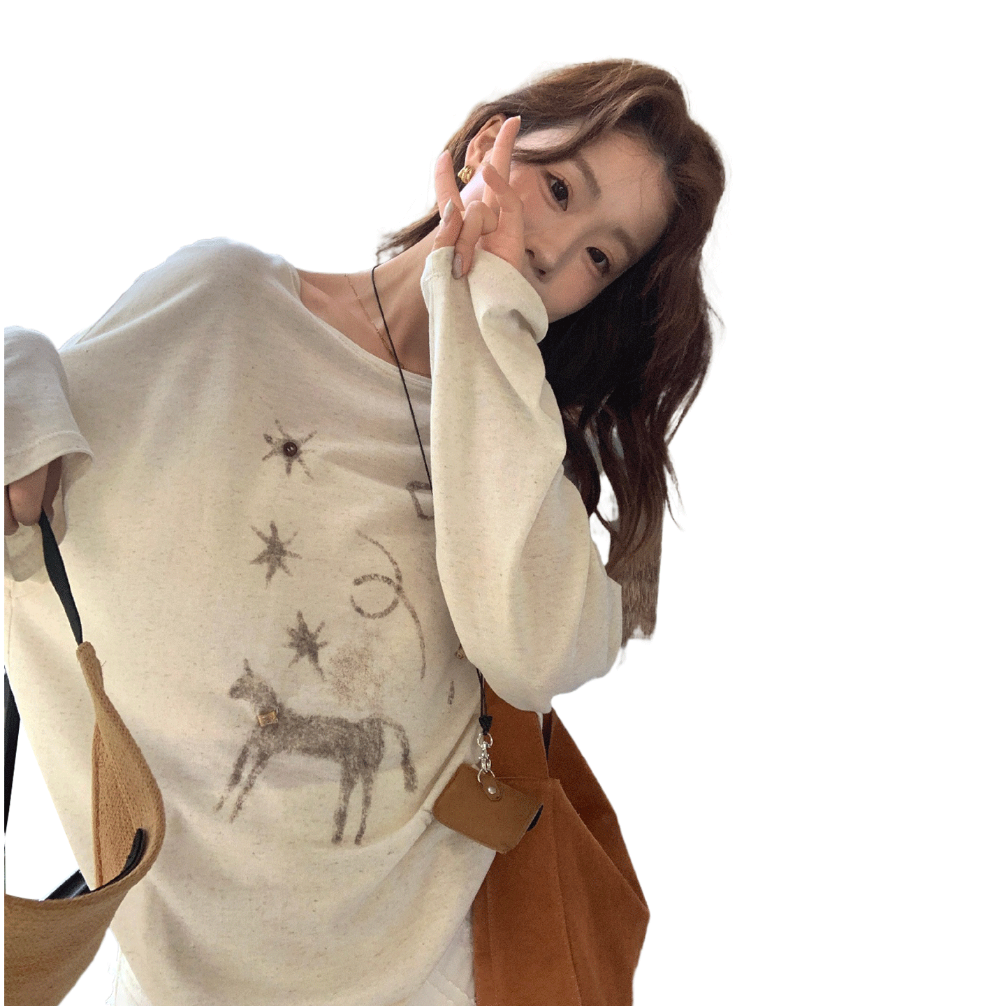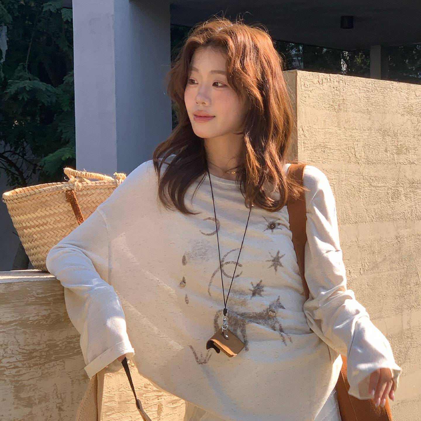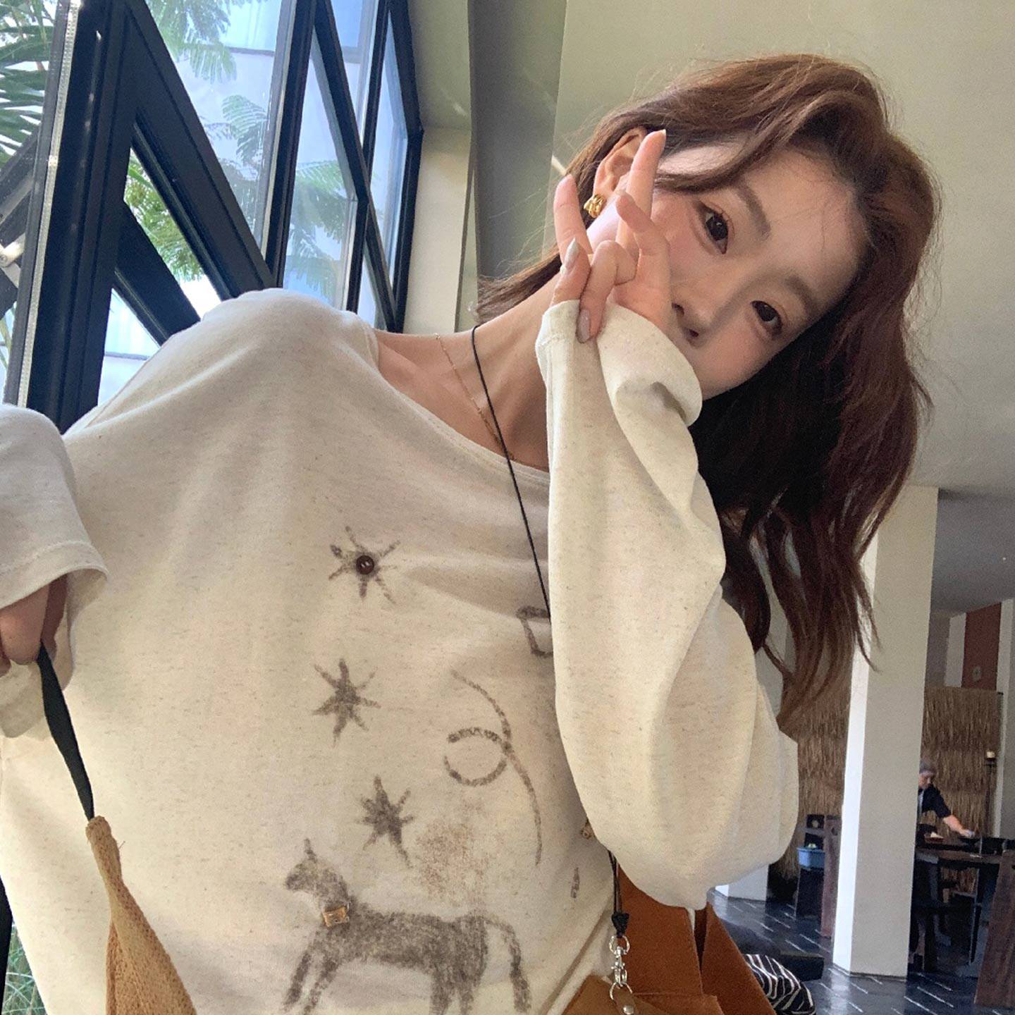 淘森女部落甜美薄款白色长袖T恤女春新款可爱印花防晒罩衫上衣
