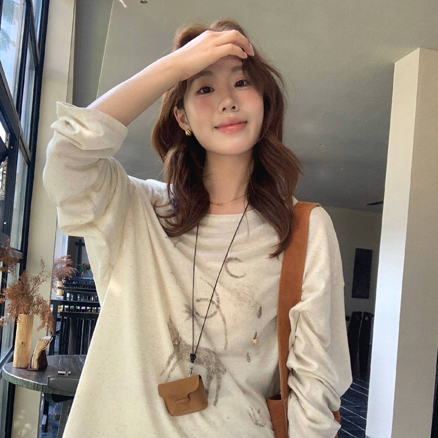 superniniyy 兔子餐厅&线条感显瘦宽松全棉卡通长袖防晒上衣T恤衫