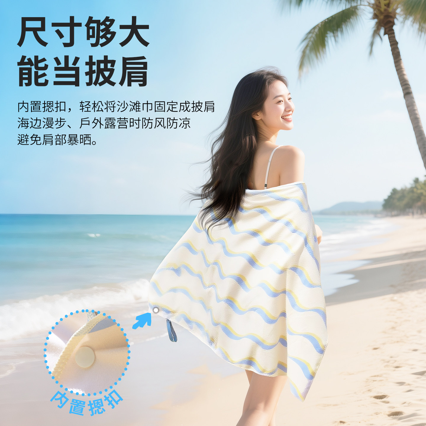 芝芝象速干沙滩便携加大户外游泳毛巾,专为户外爱好者设计,采用超细纤维材质,吸水快干,3秒迅速蒸发水分,告别湿漉漉的烦恼。加大尺寸设计,满足全身包裹需求,无论是海边游泳、沙滩休闲,还是露营、健身后使用,都能轻松应对。轻盈便携,折叠后仅手掌大小,配有便捷挂绳,方便悬挂晾晒与收纳。亲肤柔软,不掉毛、不褪色,经久耐用。多款清新色彩可选,时尚实用兼具。无论是夏日海滩度假,还是日常运动出行,芝芝象毛巾都是您的贴心伴侣,让清爽随行,畅享户外每一刻。