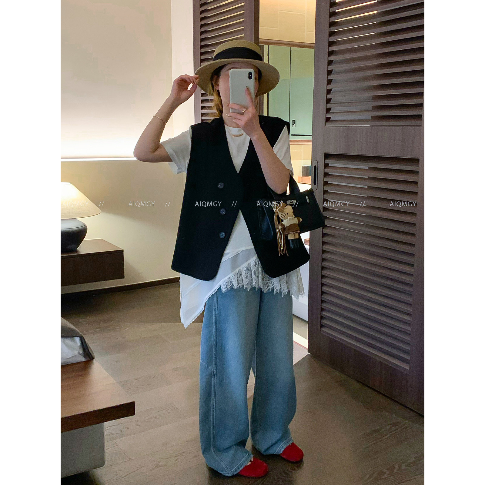 天【新品】素然 Klee Klee 26春女士简约 环保棉轻薄黑牛仔V领马甲