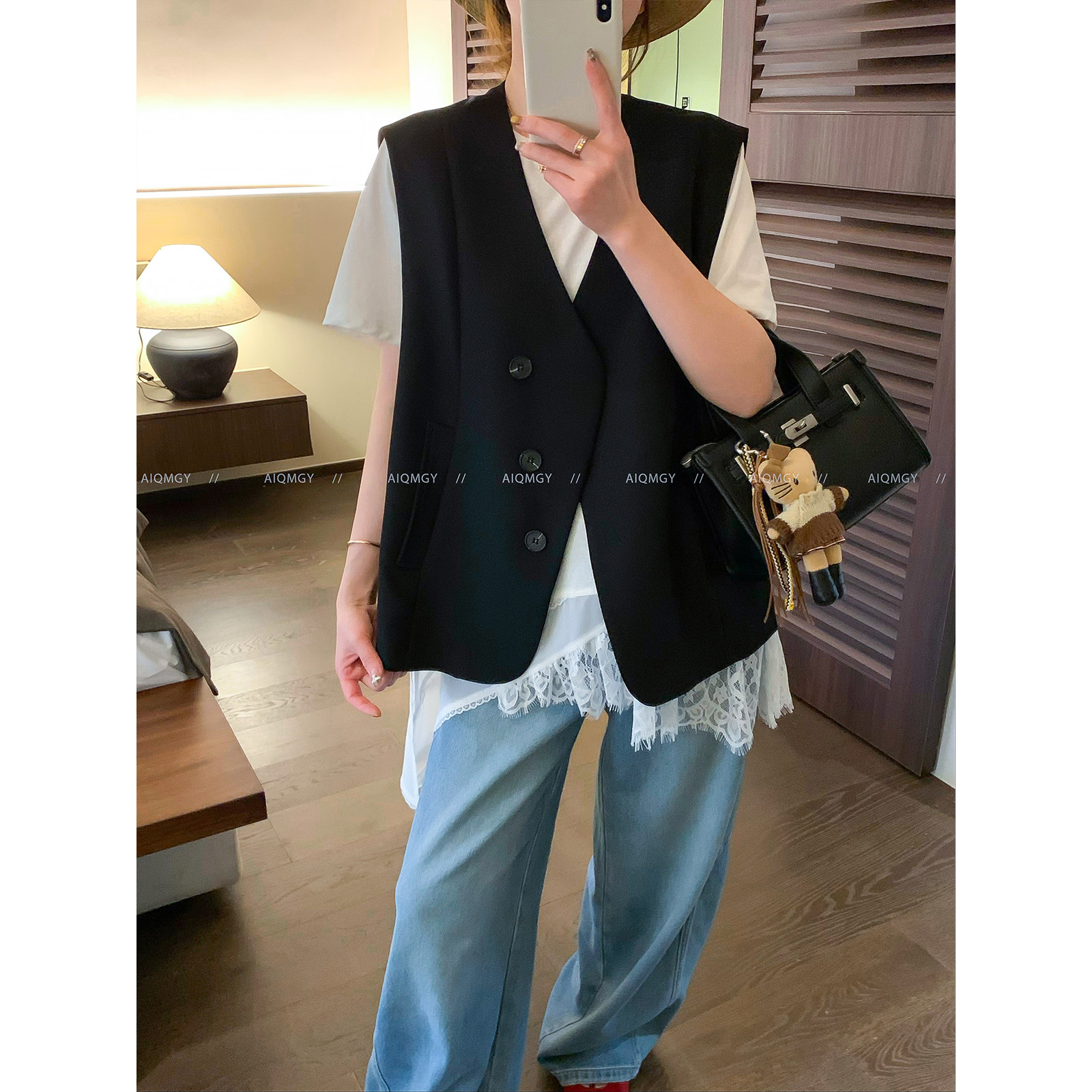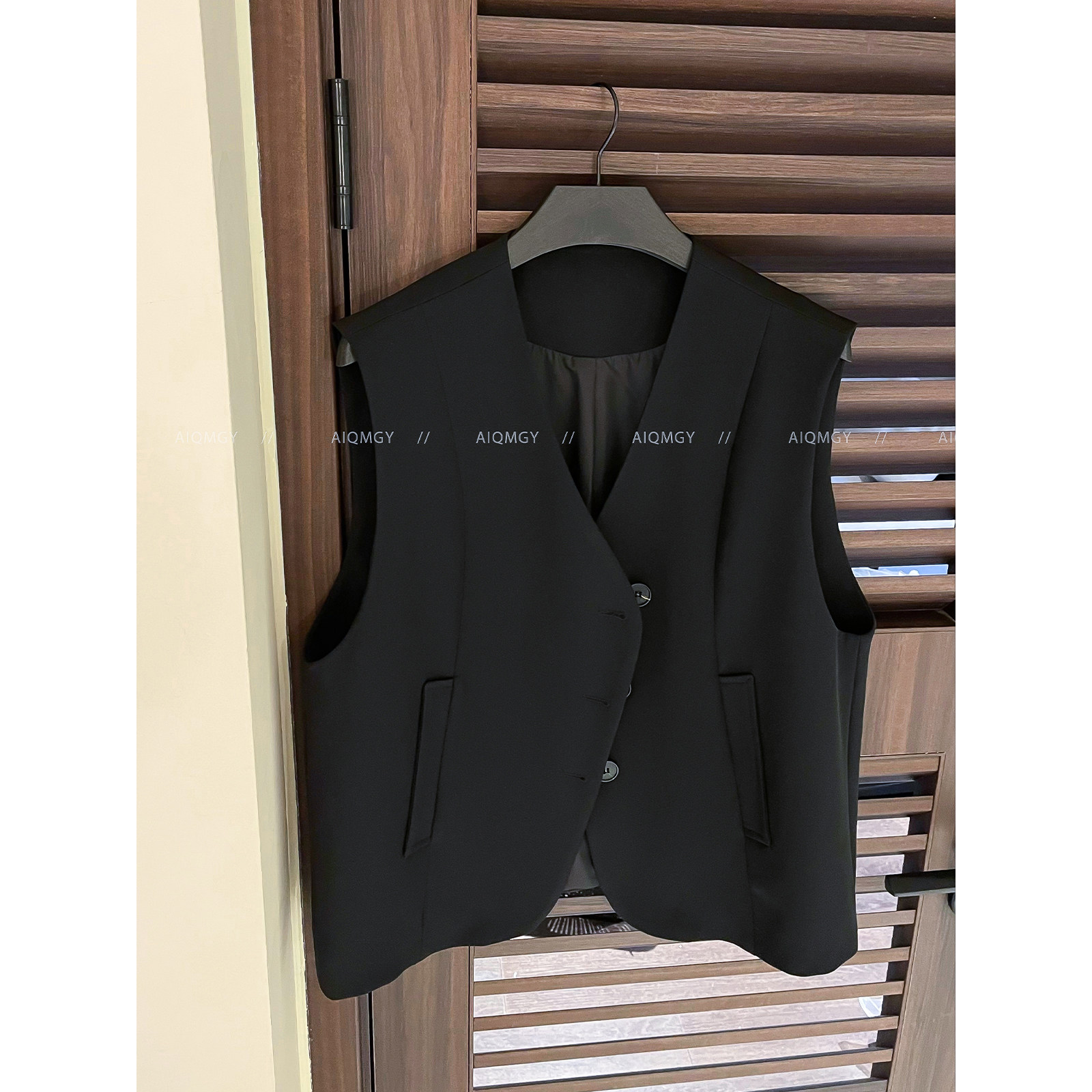 淘宝爱情魔鬼鱼 黑色V领通勤马甲女2026春季新款百搭叠穿外穿上衣外套