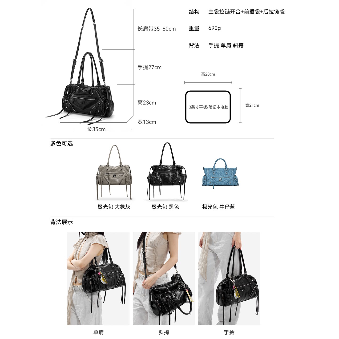 天猫【祝绪丹同款】JTB极光2.0新款机车单肩斜挎包大容量托特包女通勤