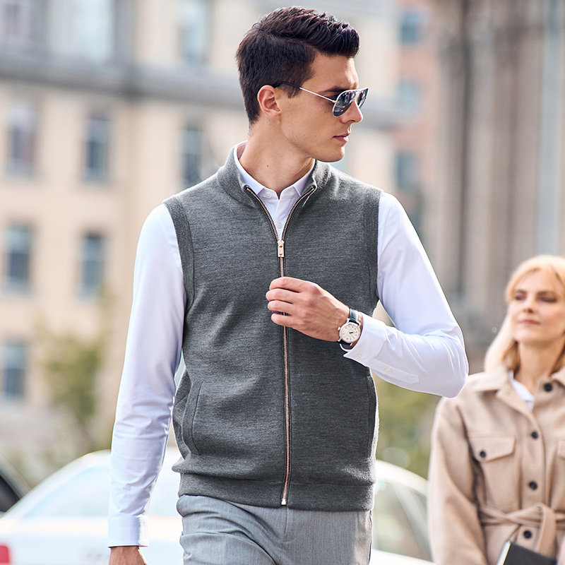 MrBu布先生无袖羊毛男士背心BT11583,精选优质羊毛面料,触感柔软、保暖透气,适合春秋季节外穿。简约纯色设计,百搭不挑人,轻松搭配衬衫、T恤或卫衣,打造休闲商务或日常通勤造型。前襟拉链开合,穿脱便捷,兼顾实用与美观。立体剪裁贴合身形,无袖设计活动自如,外穿马甲风格时尚利落。无论是单穿还是叠穿,都能展现男士儒雅气质与精致品味。BT11583兼顾舒适性与时尚感,是男士衣橱中不可或缺的实用单品,适合追求品质与格调的现代男性。