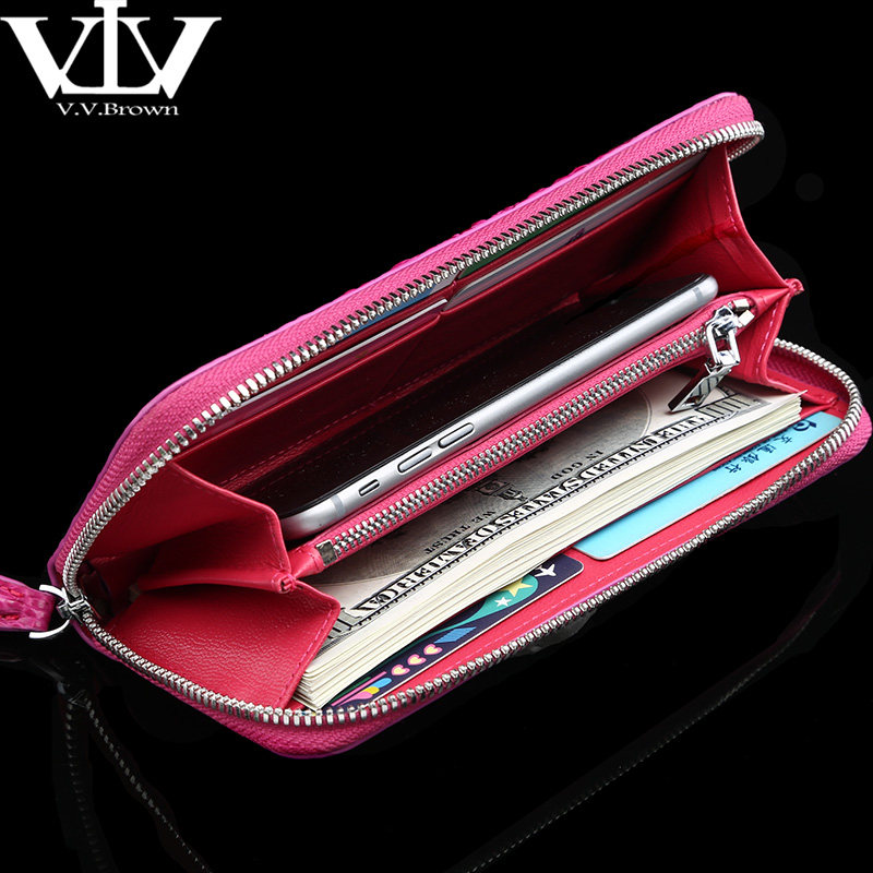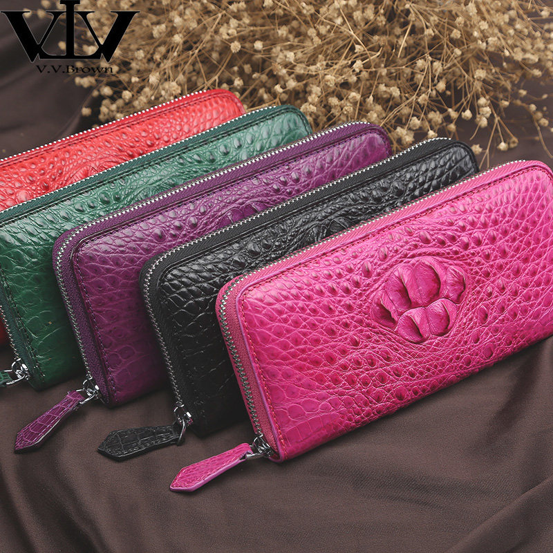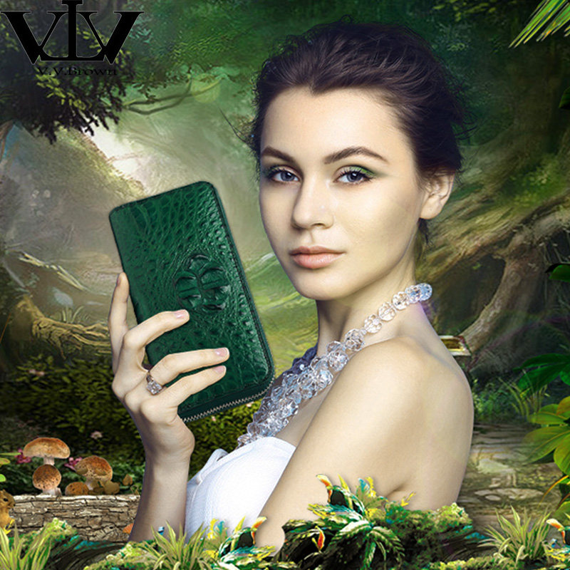 天猫V.V.Brown女士钱包长款 鳄鱼皮真皮钱包女真皮女式同款手包
