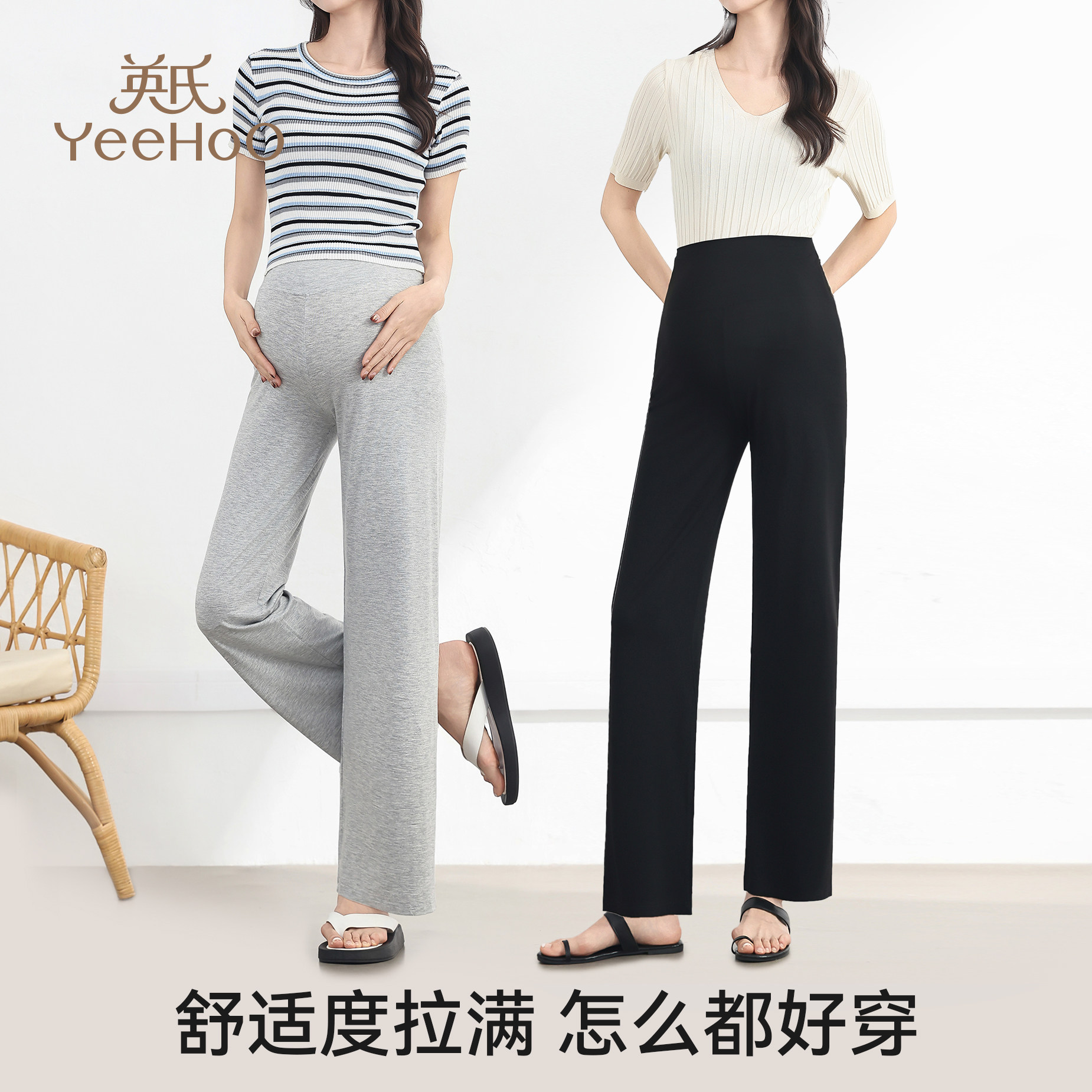 淘孕妇牛仔裤夏春秋季弹力直筒裤托腹九分裤小个子阔腿裤外穿休闲裤