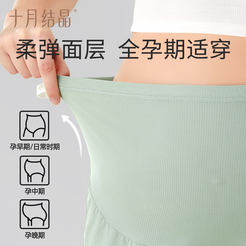 天猫十月结晶孕妇外穿冰丝安全裤春夏季薄款打底裤防走光大码短裤2条