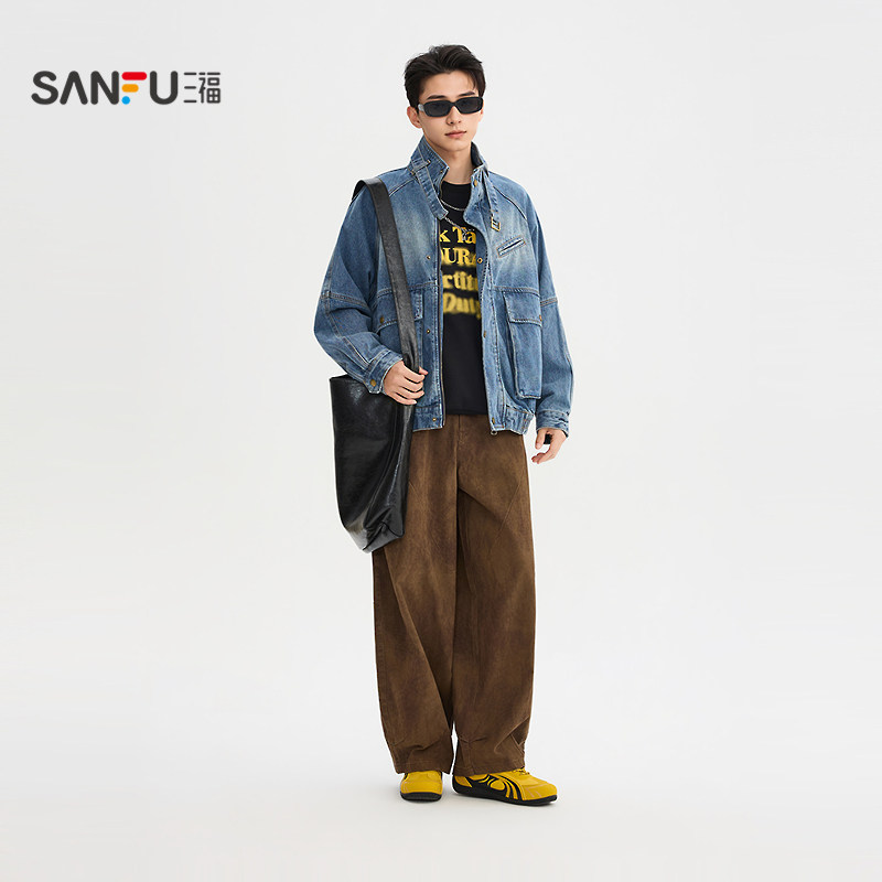 三福2026春季新款男士分割结构喷马骝牛仔夹克(货号:518571),以复古潮流为灵感,融合现代剪裁工艺,打造宽松立领设计,兼具街头感与实用性。采用高品质水洗牛仔面料,经喷马骝工艺处理,呈现自然做旧质感与独特纹理。立体分割结构增强层次感,袖口与下摆细节精致,彰显设计巧思。宽松版型舒适自在,适合叠穿搭配,轻松驾驭休闲与潮流风格。无论是搭配卫衣、T恤或衬衫,都能展现随性不羁的型男魅力。这款夹克是春季衣橱的时尚利器,兼顾个性与实穿,引领2026春夏男装新风尚。