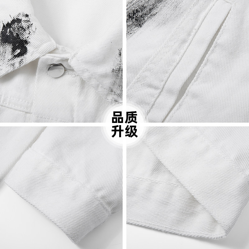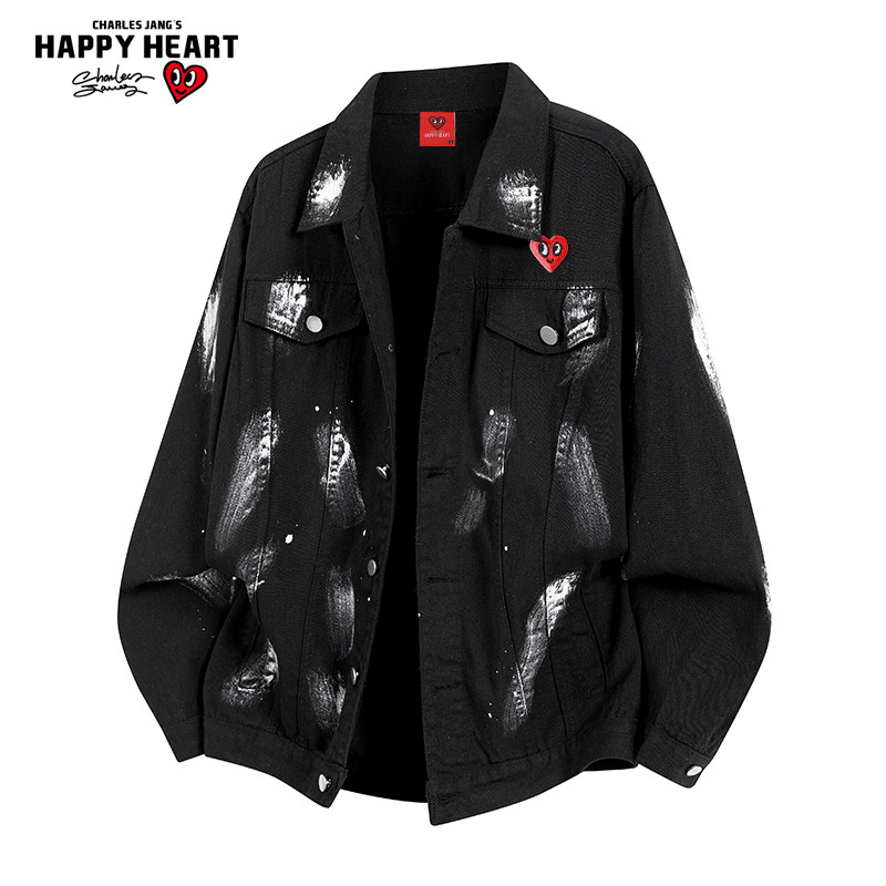 天猫查尔斯桃心 美式涂鸦翻领牛仔外套男春秋季百搭水洗休闲情侣夹克